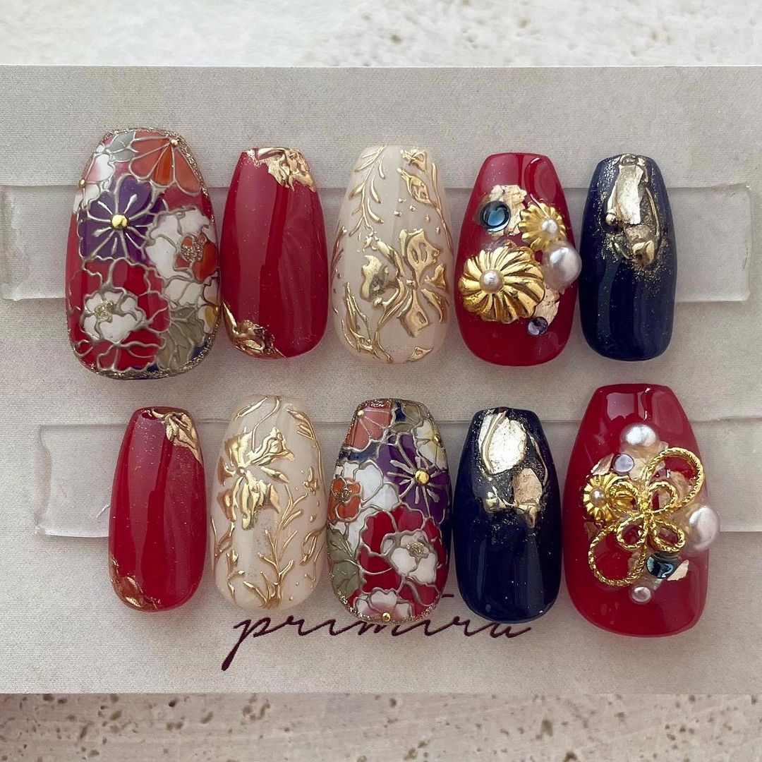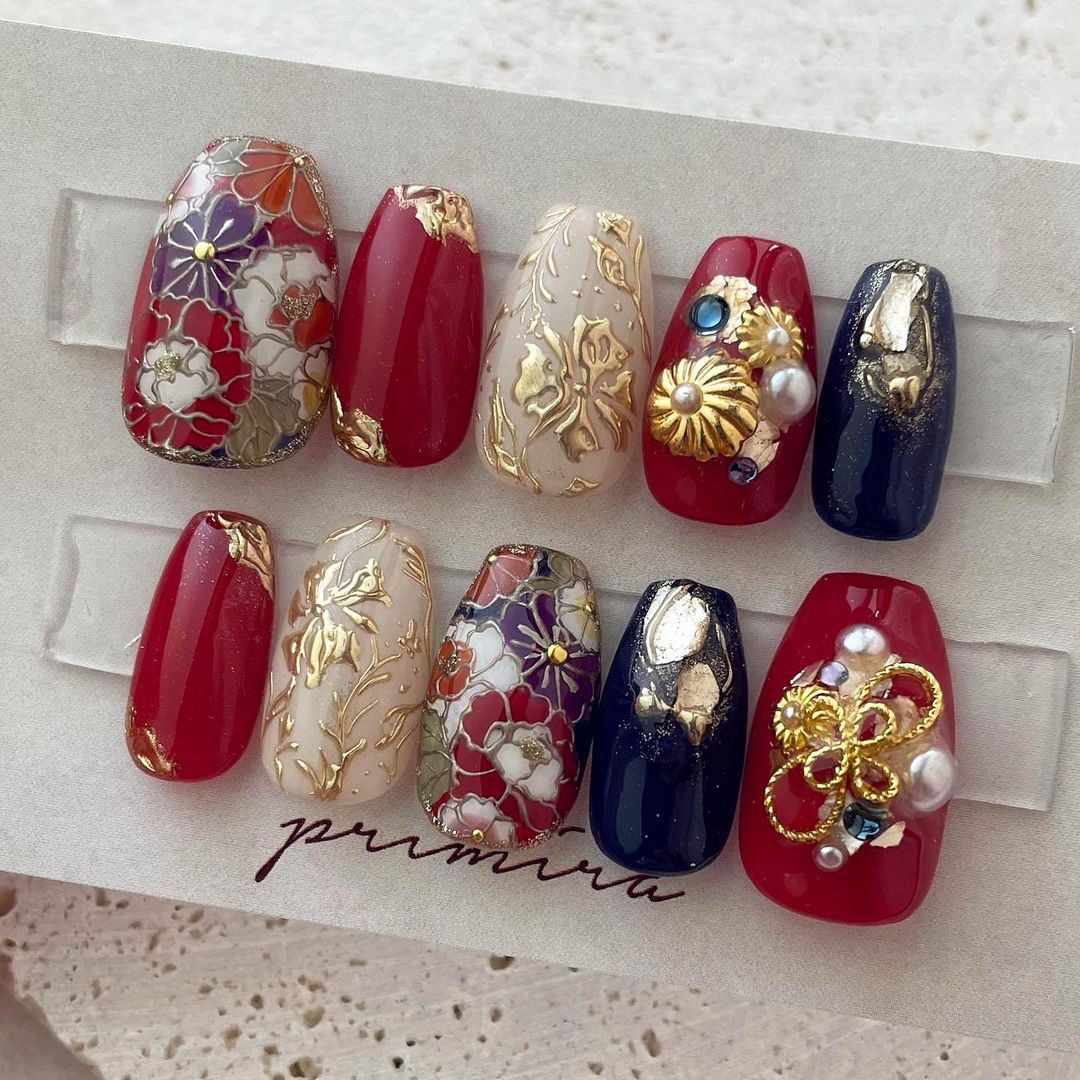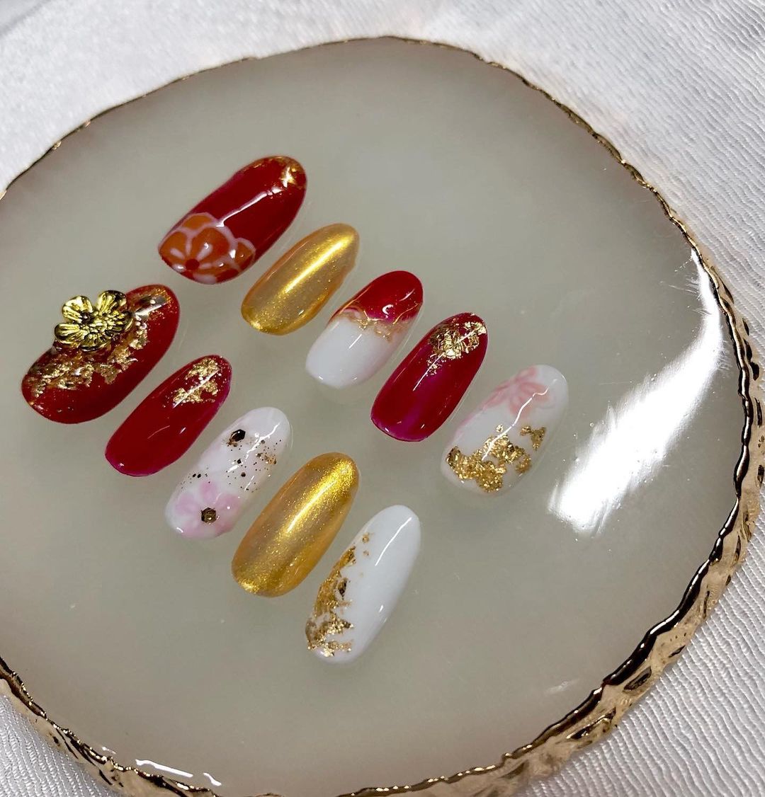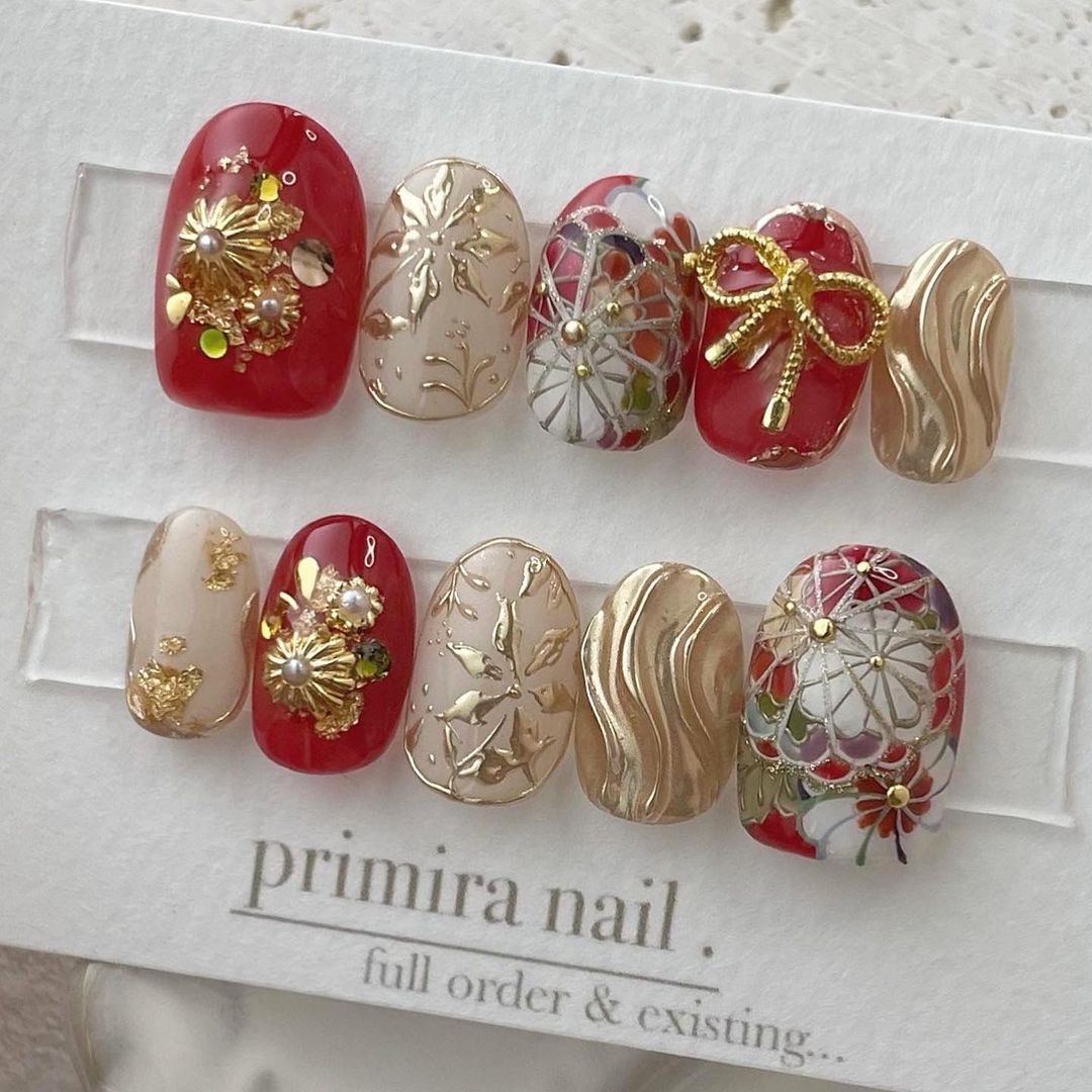 レッド系カラーの和柄ネイル93選!成人式などに!