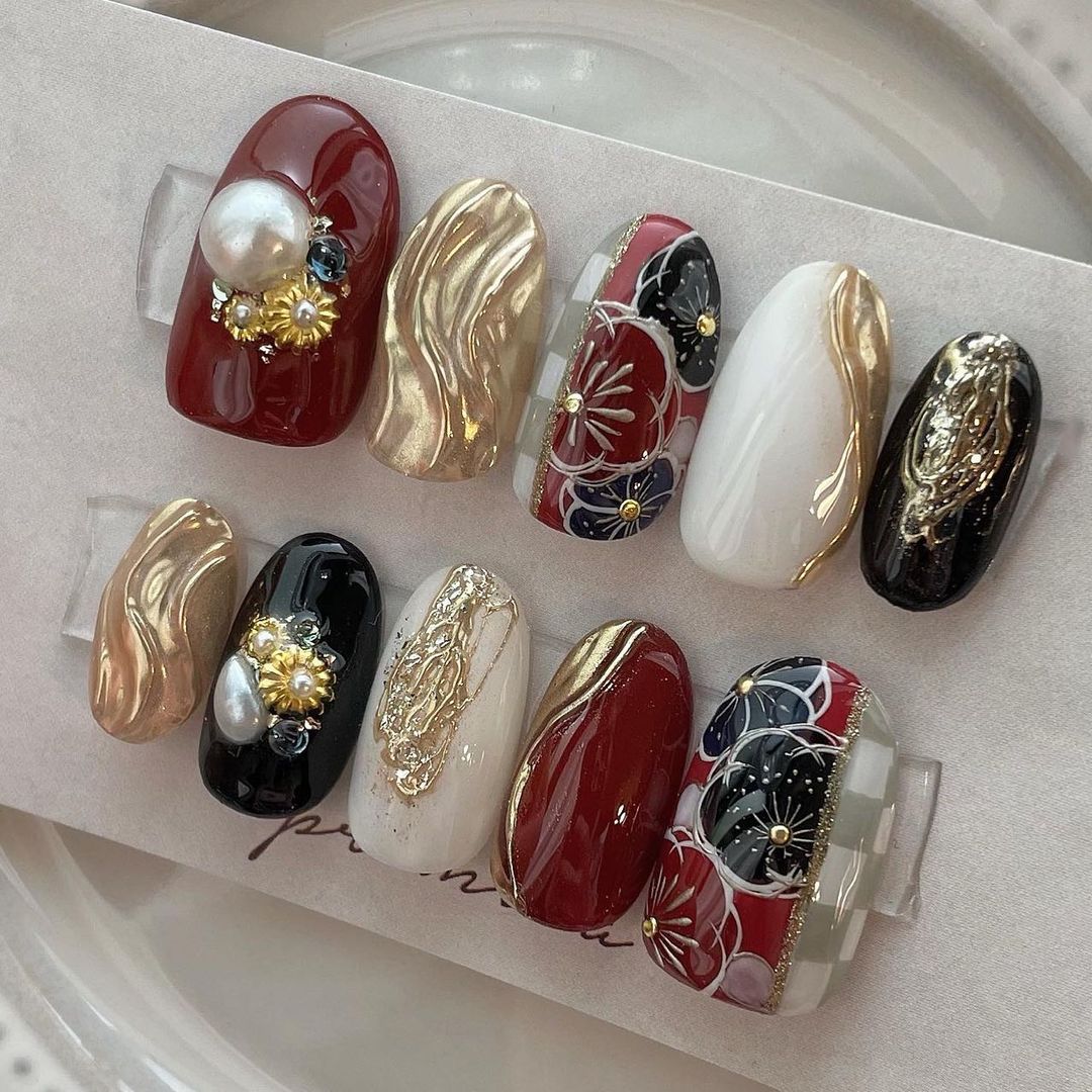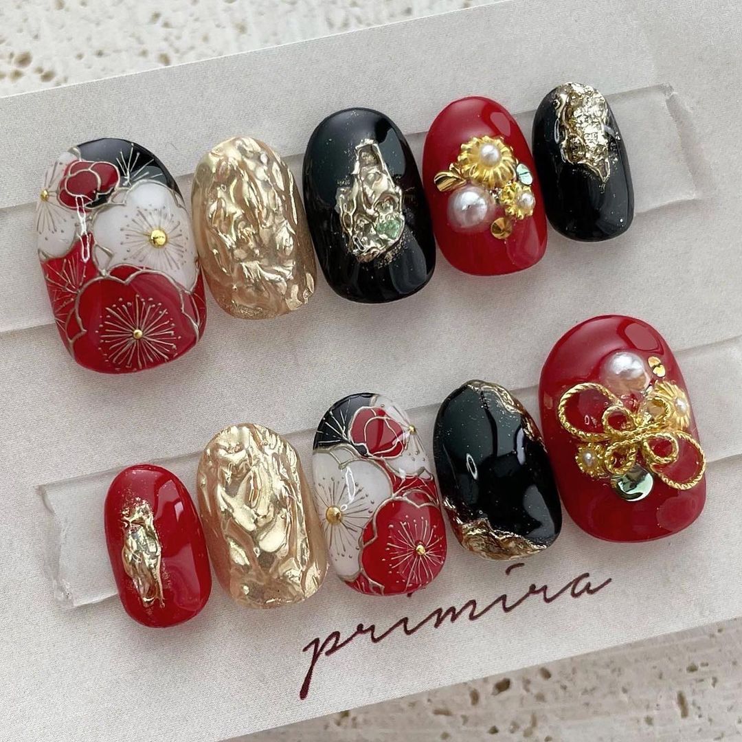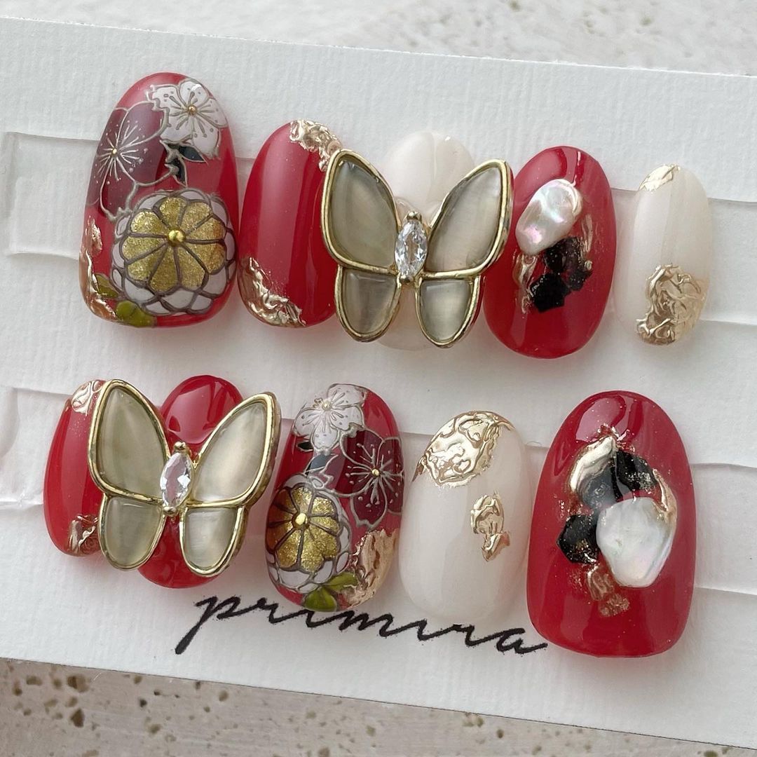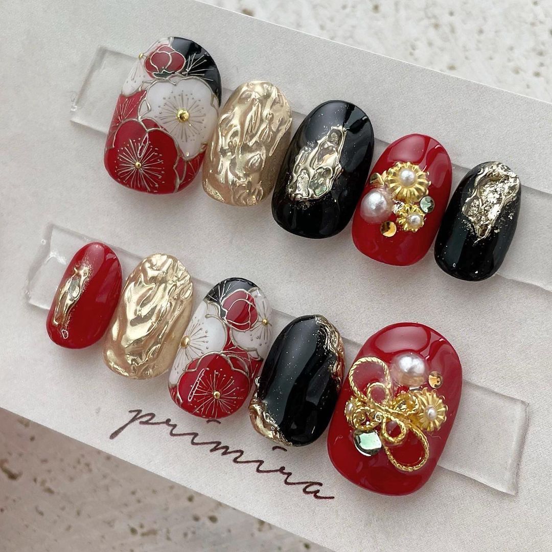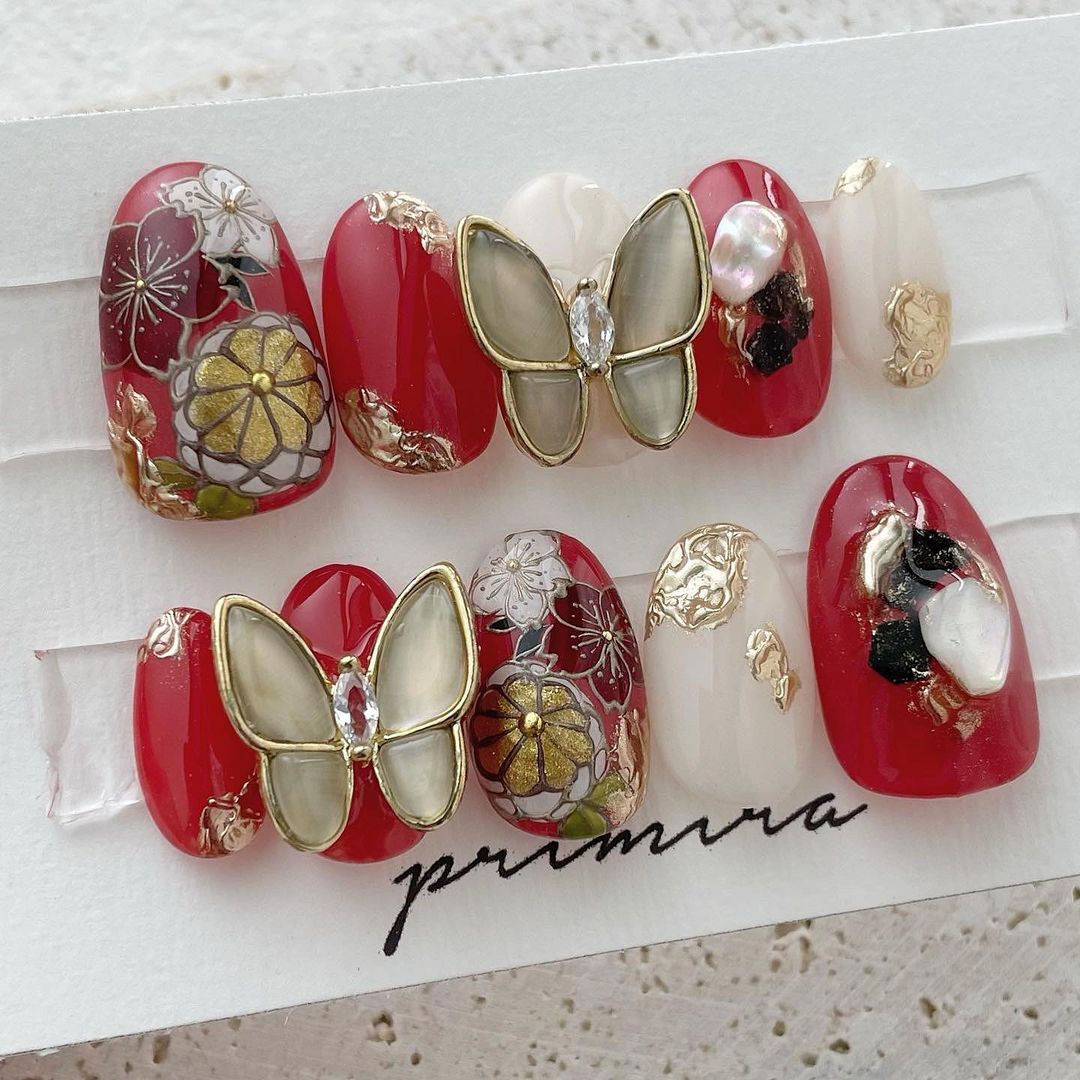 レッド系カラーの和柄ネイル93選!成人式などに!