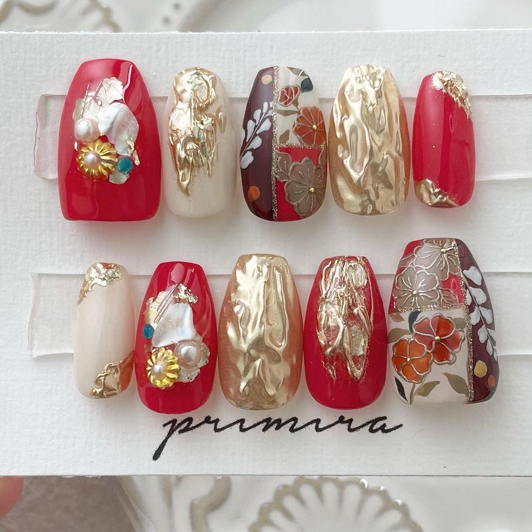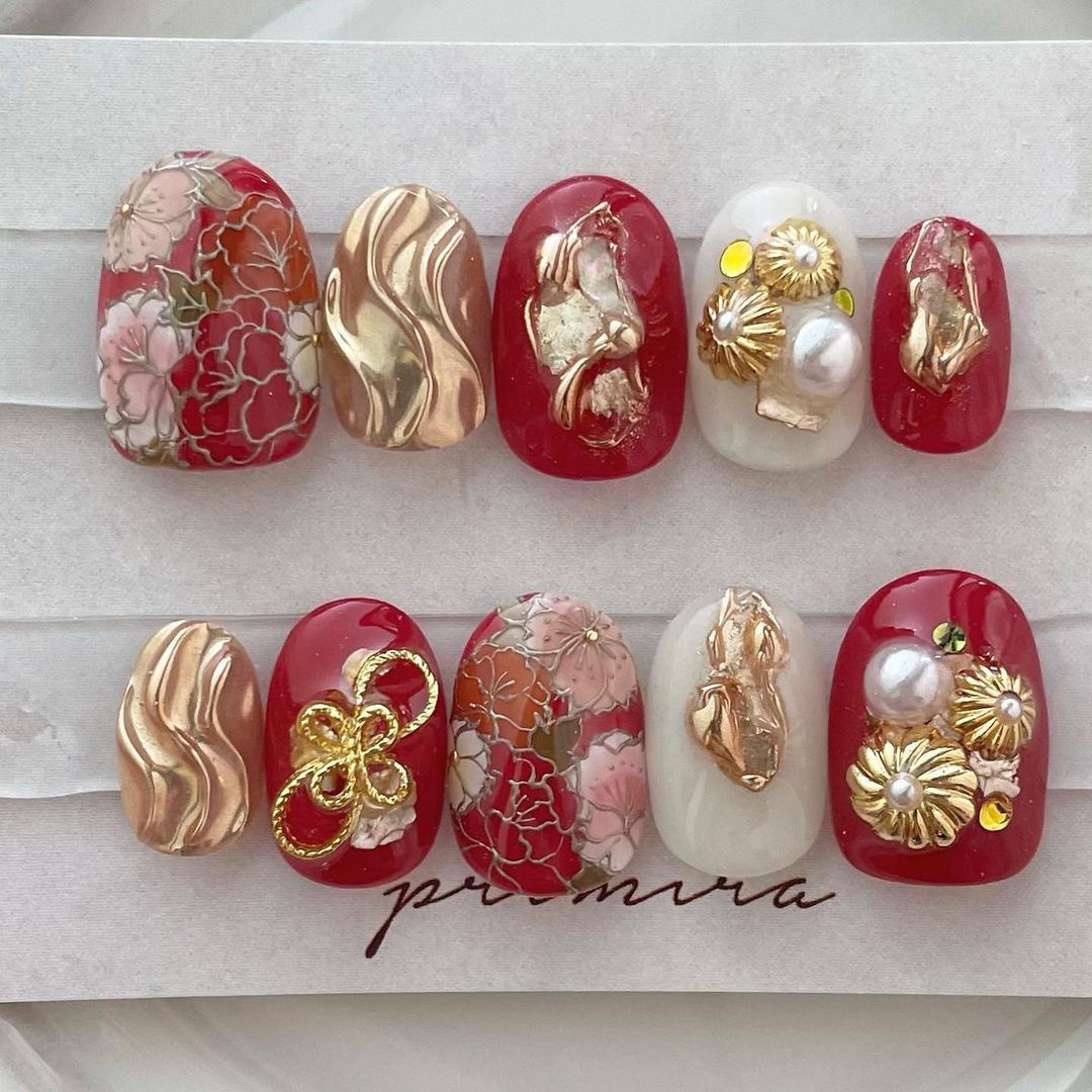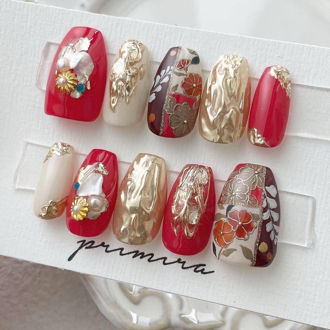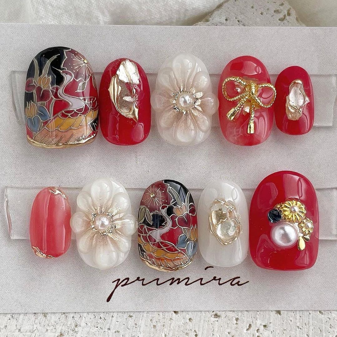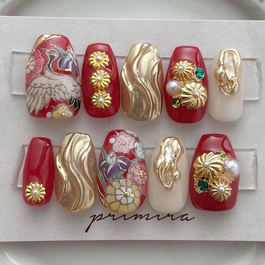 【保存版】成人式に!レッド系カラーの和柄ネイル93選!