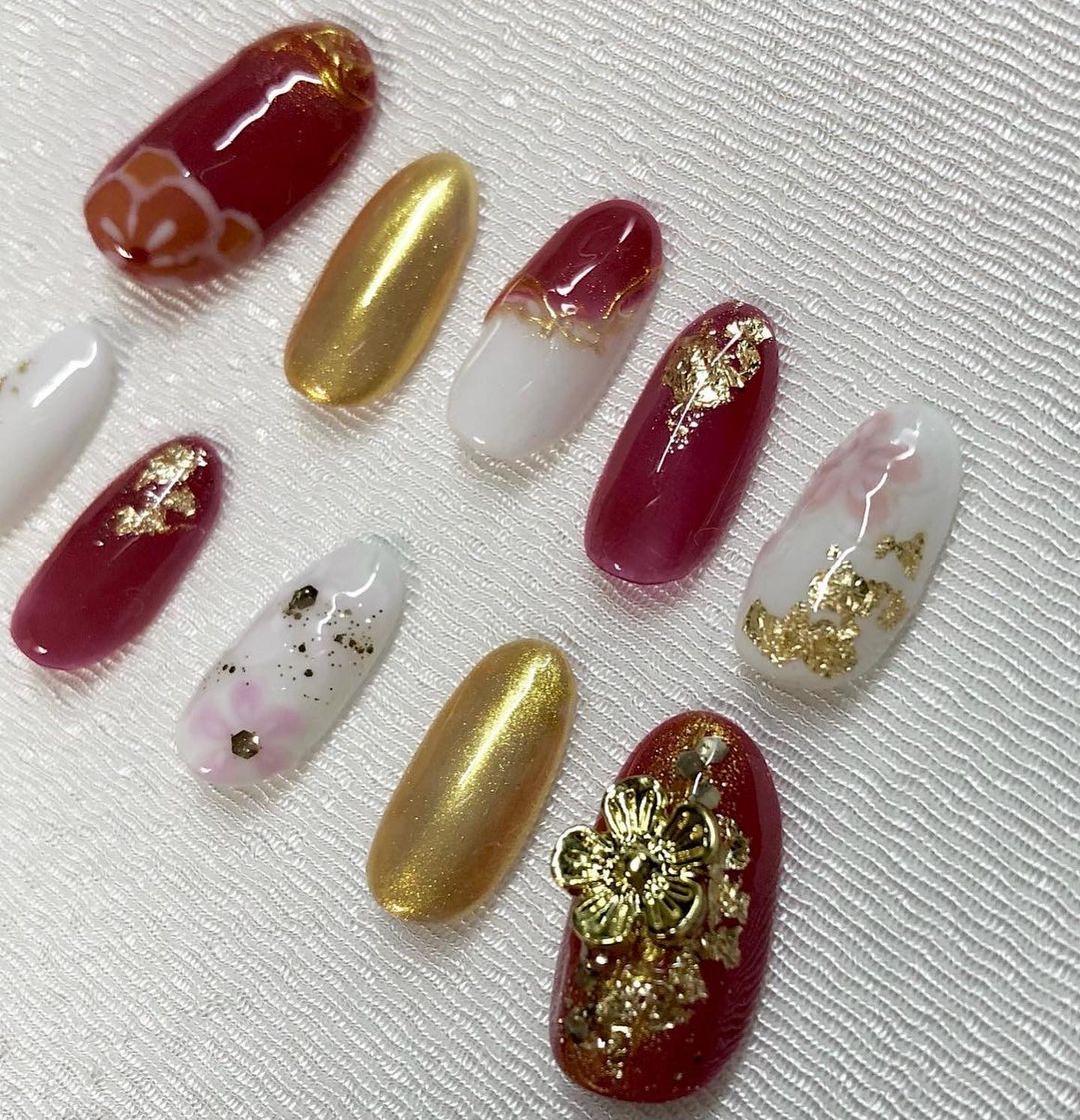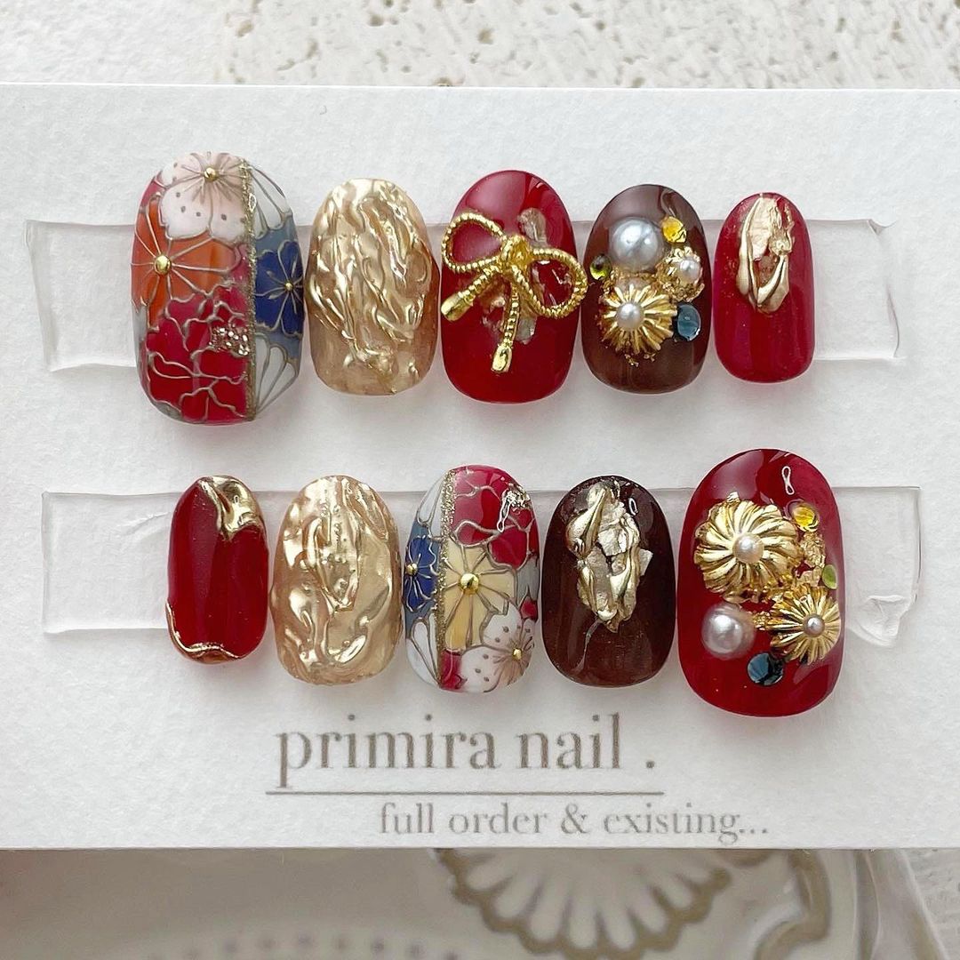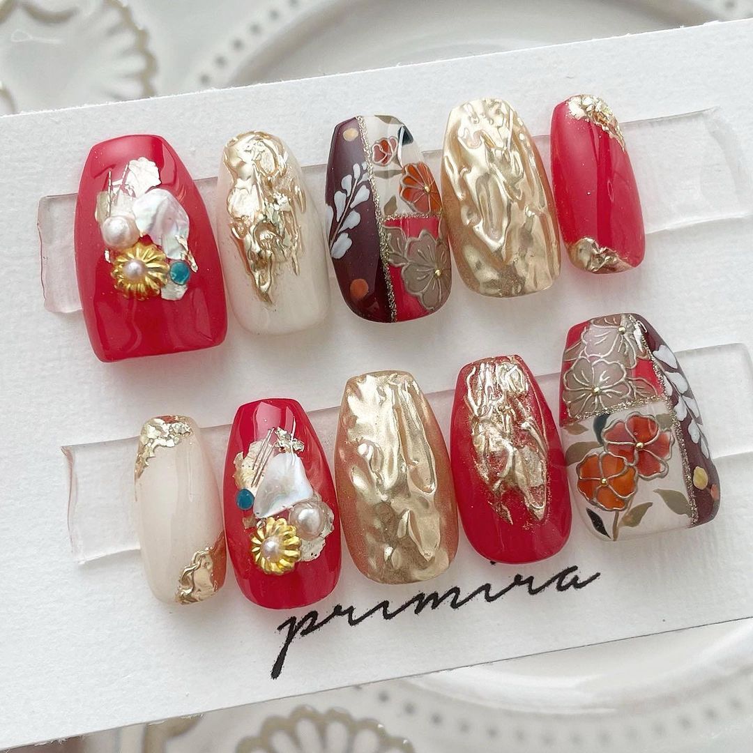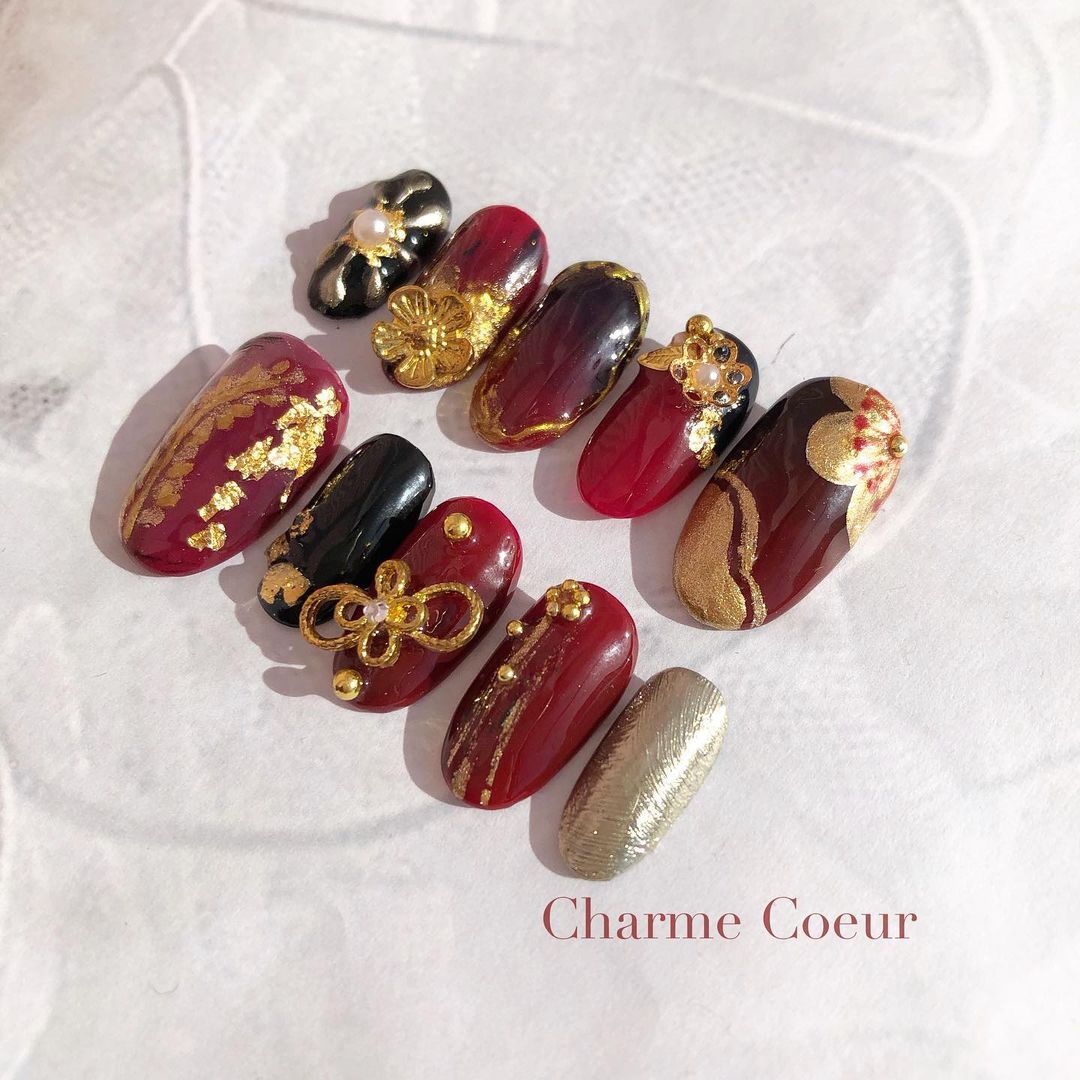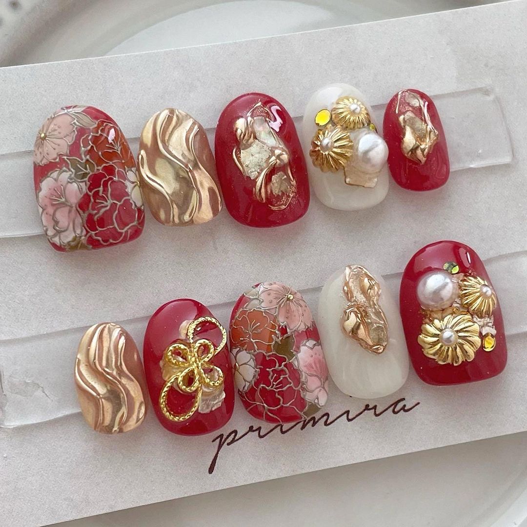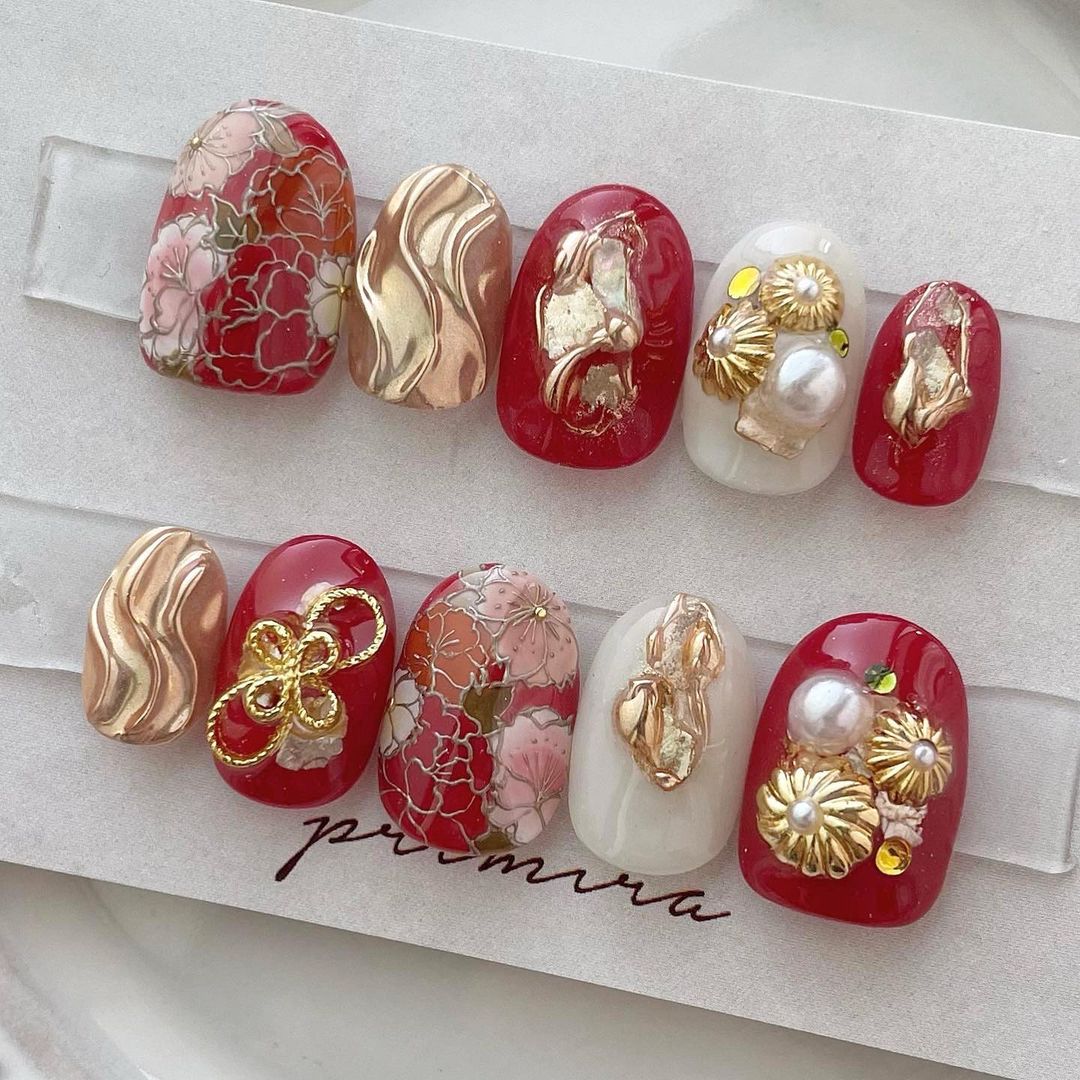 【保存版】成人式に!レッド系カラーの和柄ネイル93選!