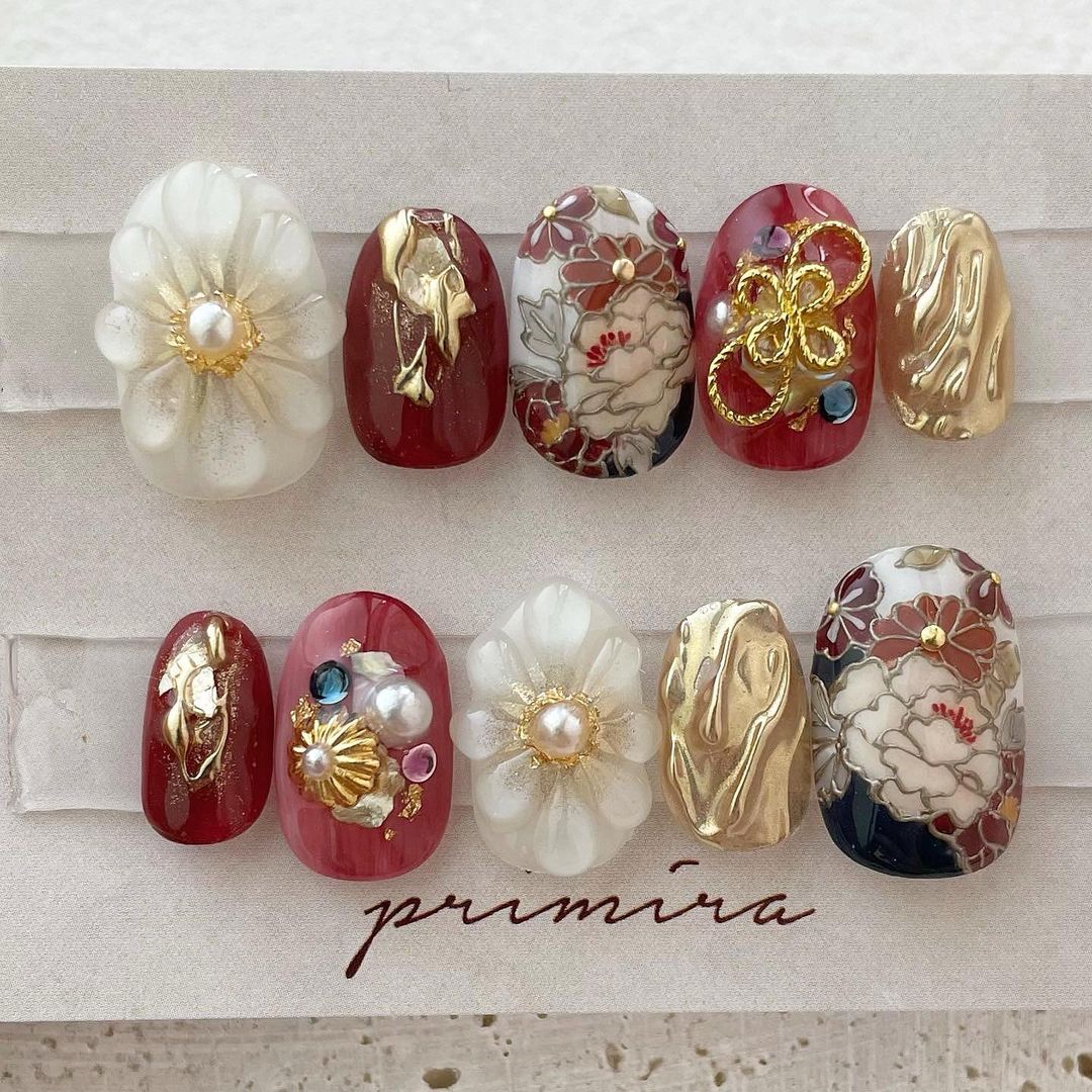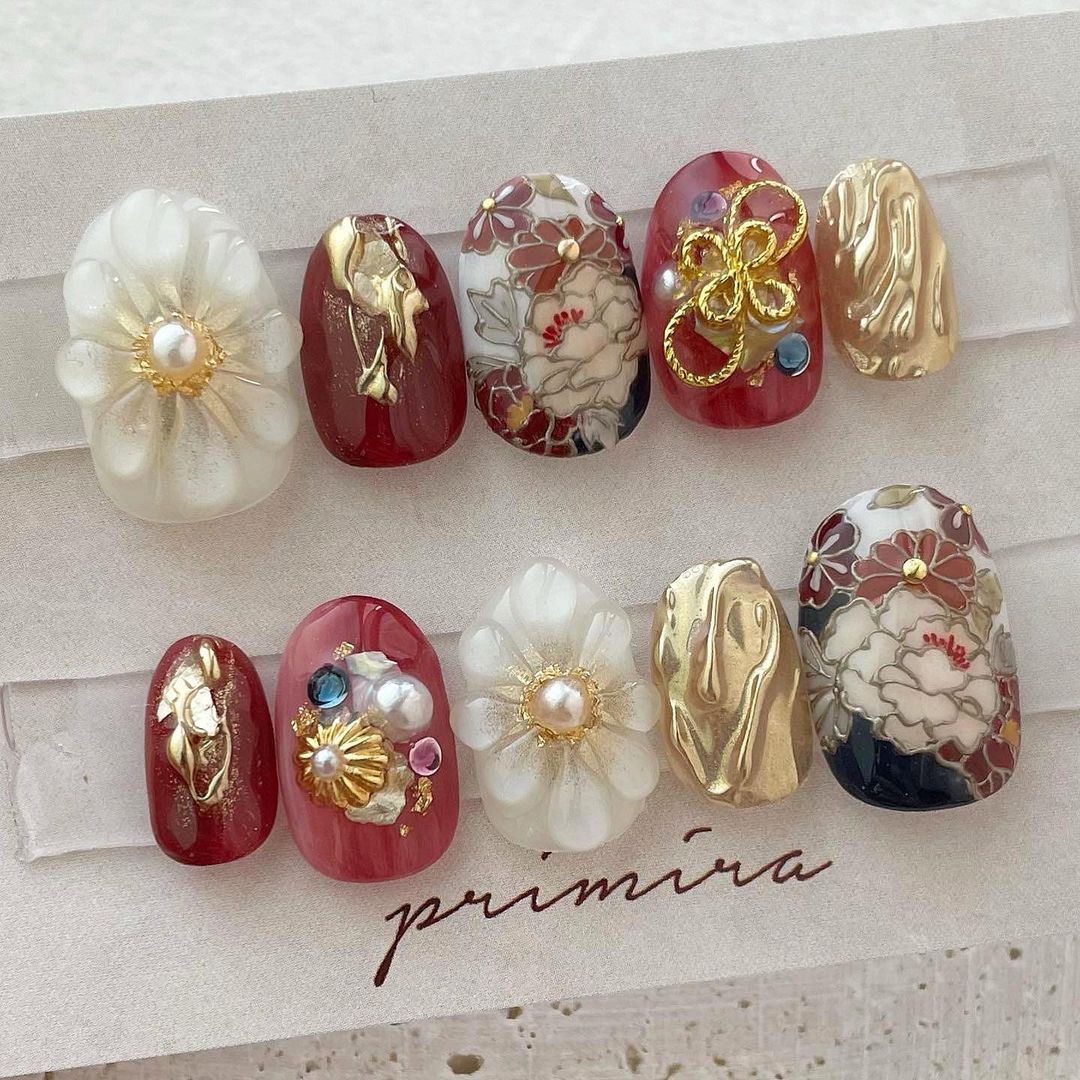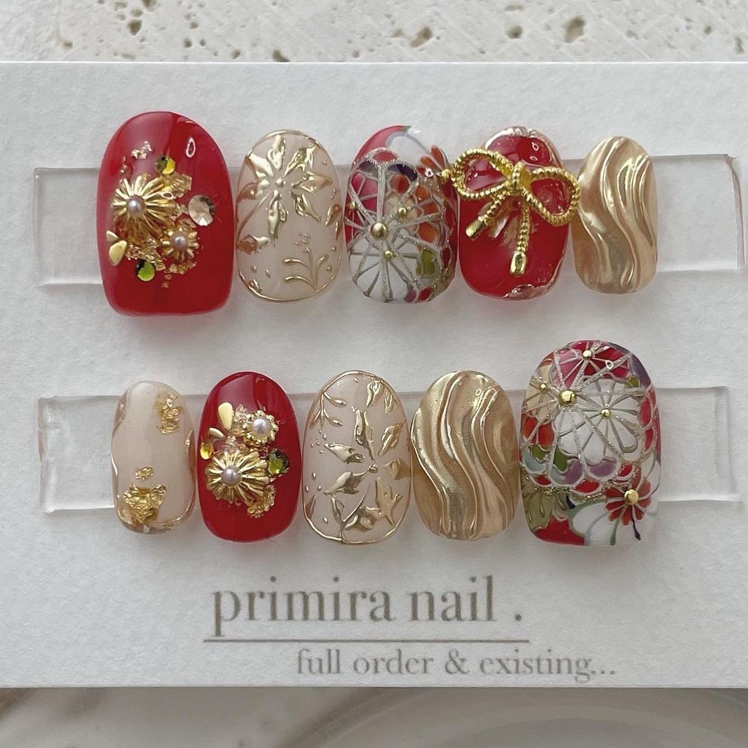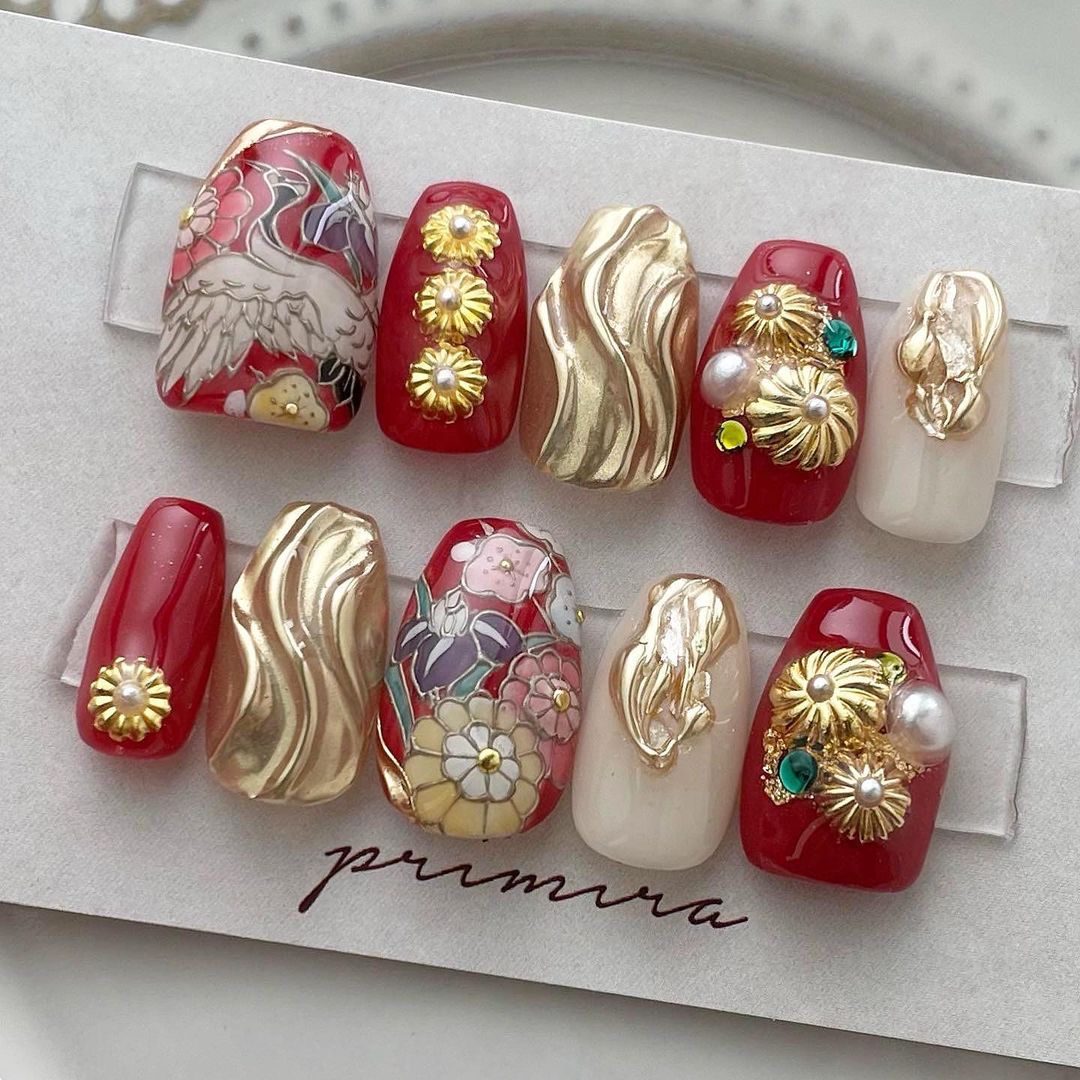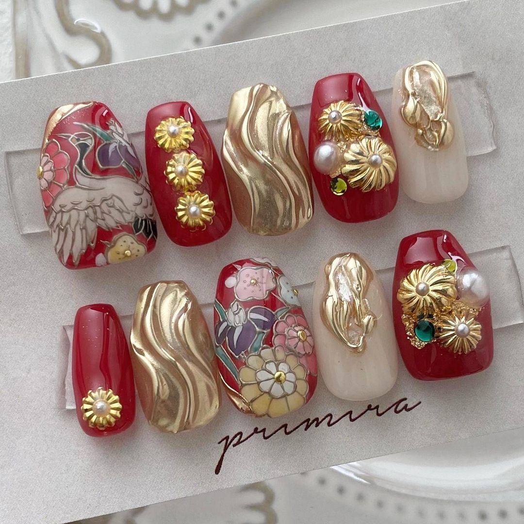 【保存版】成人式に!レッド系カラーの和柄ネイル93選!