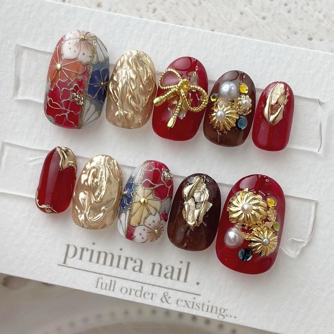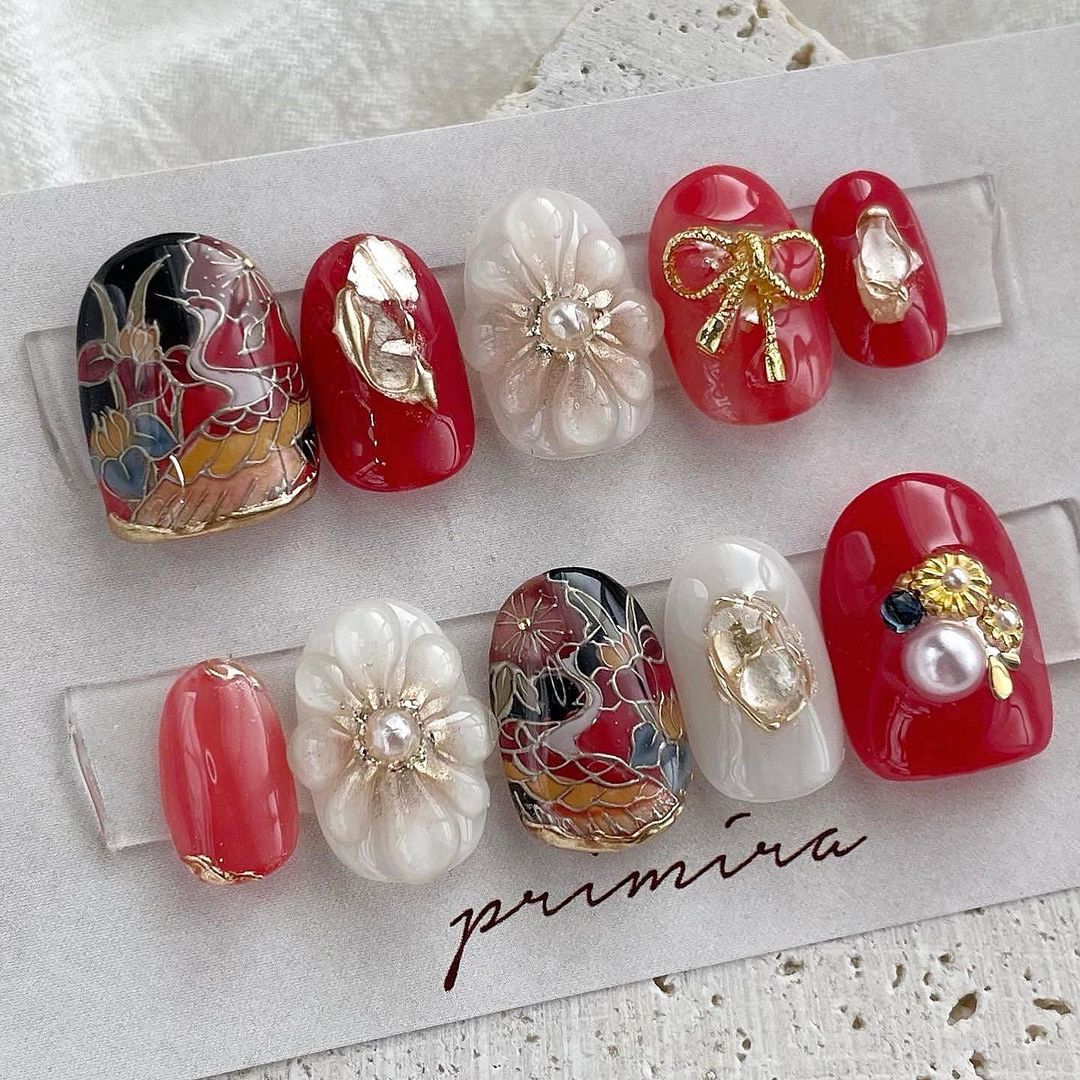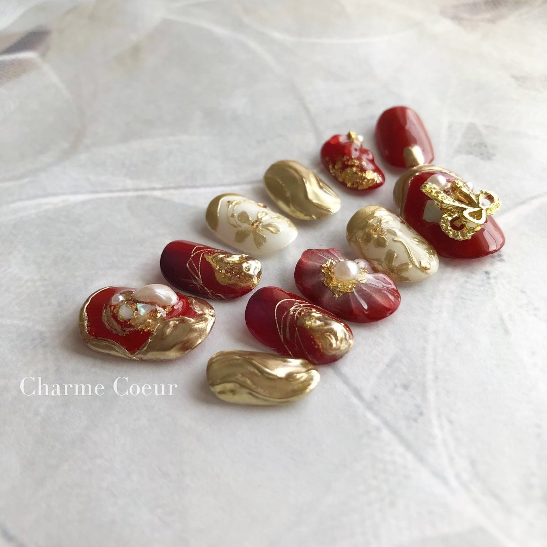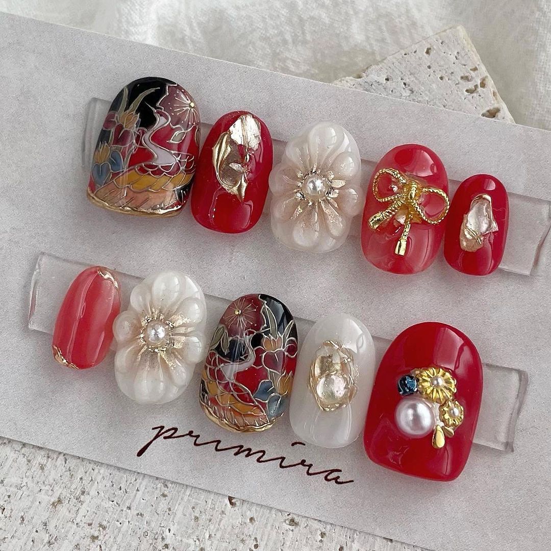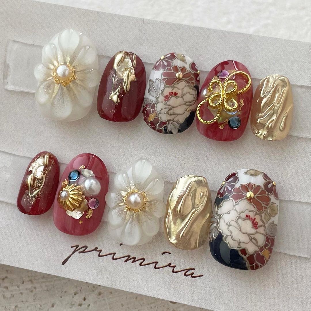 【保存版】成人式に!レッド系カラーの和柄ネイル93選!