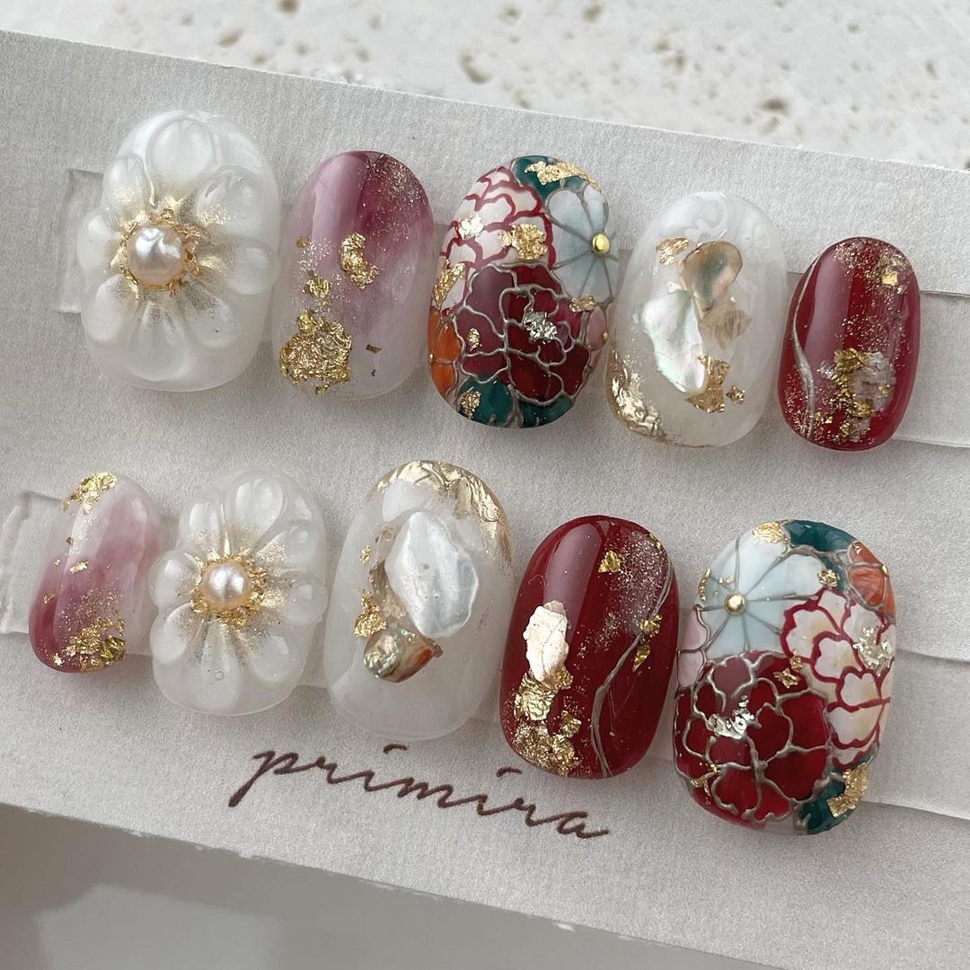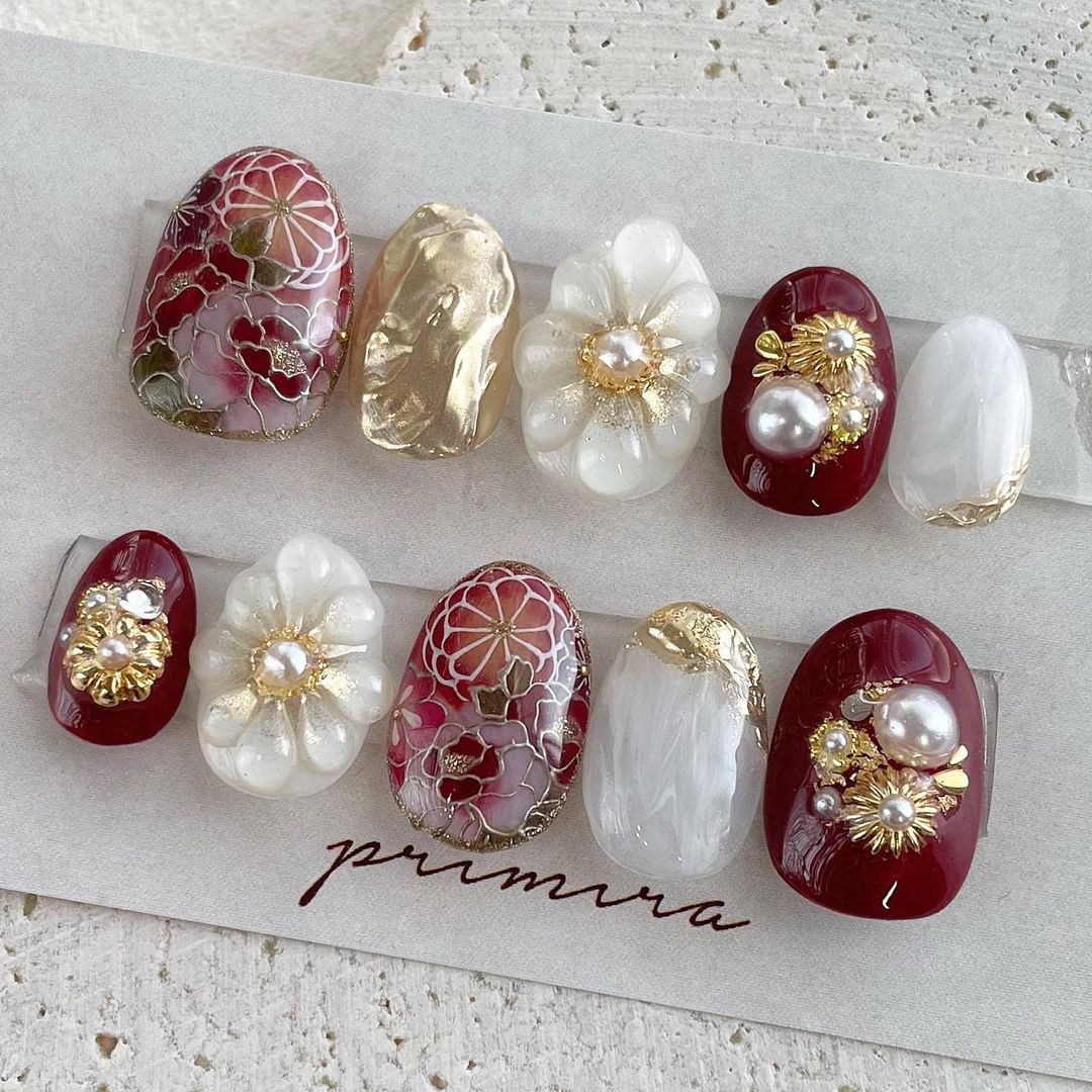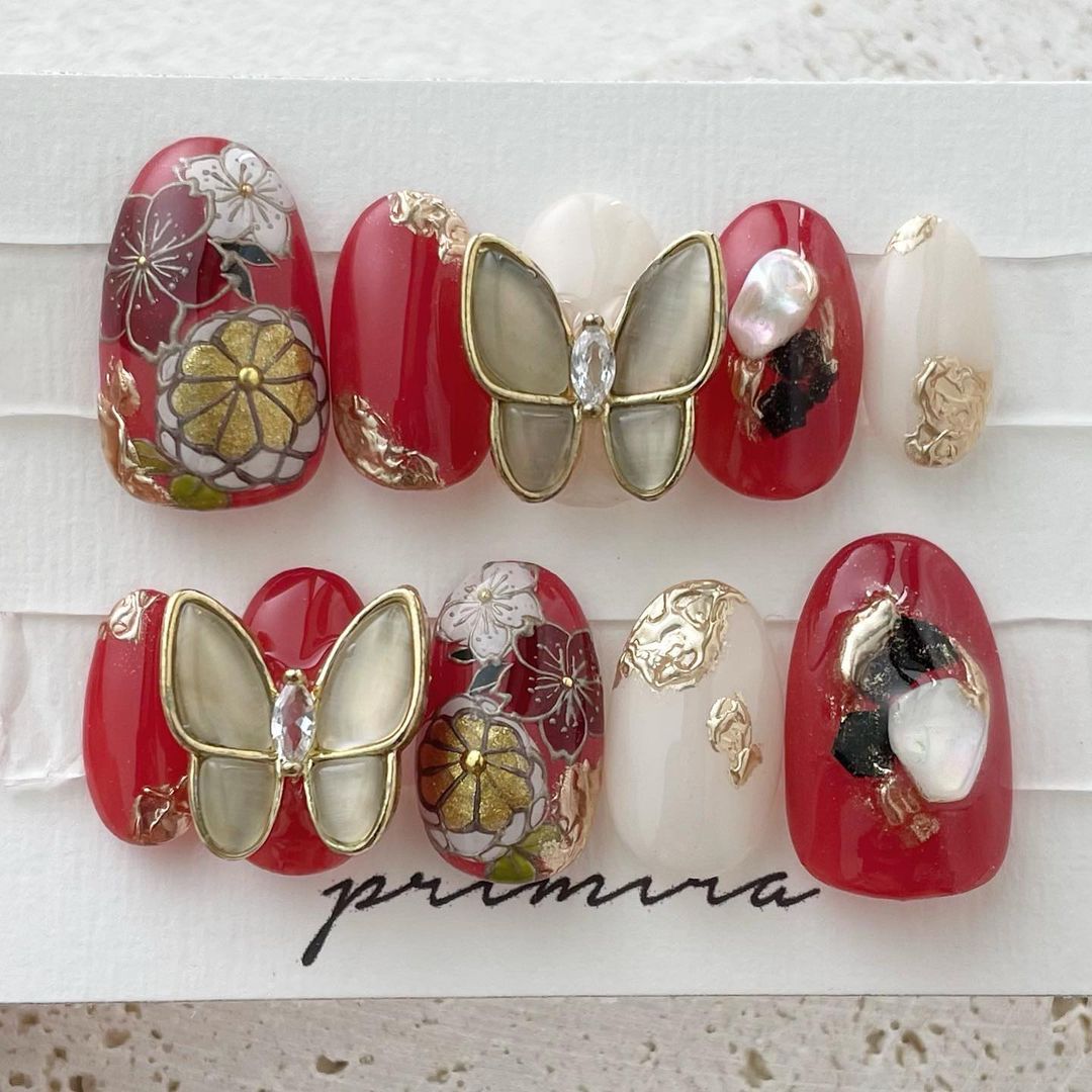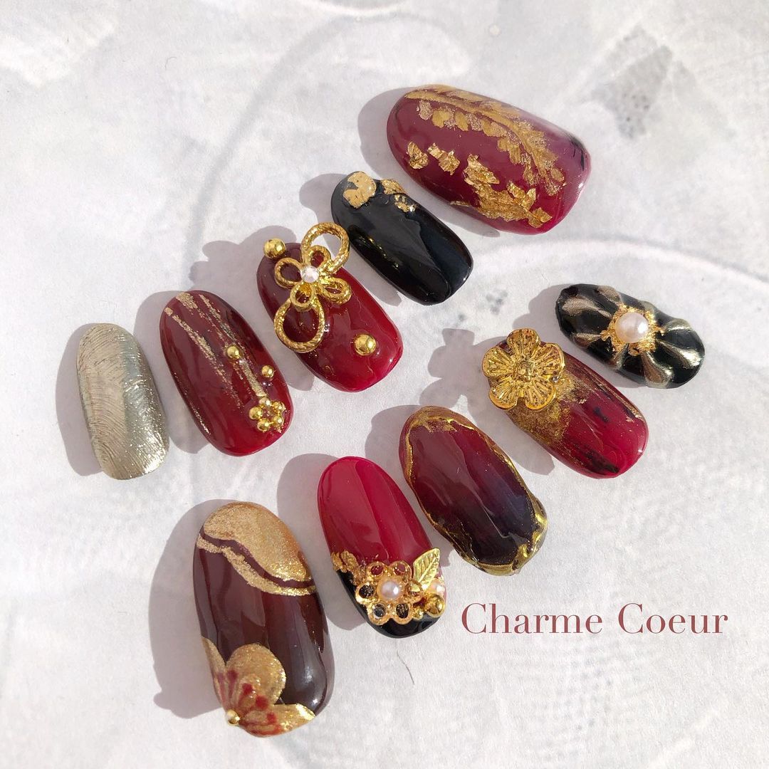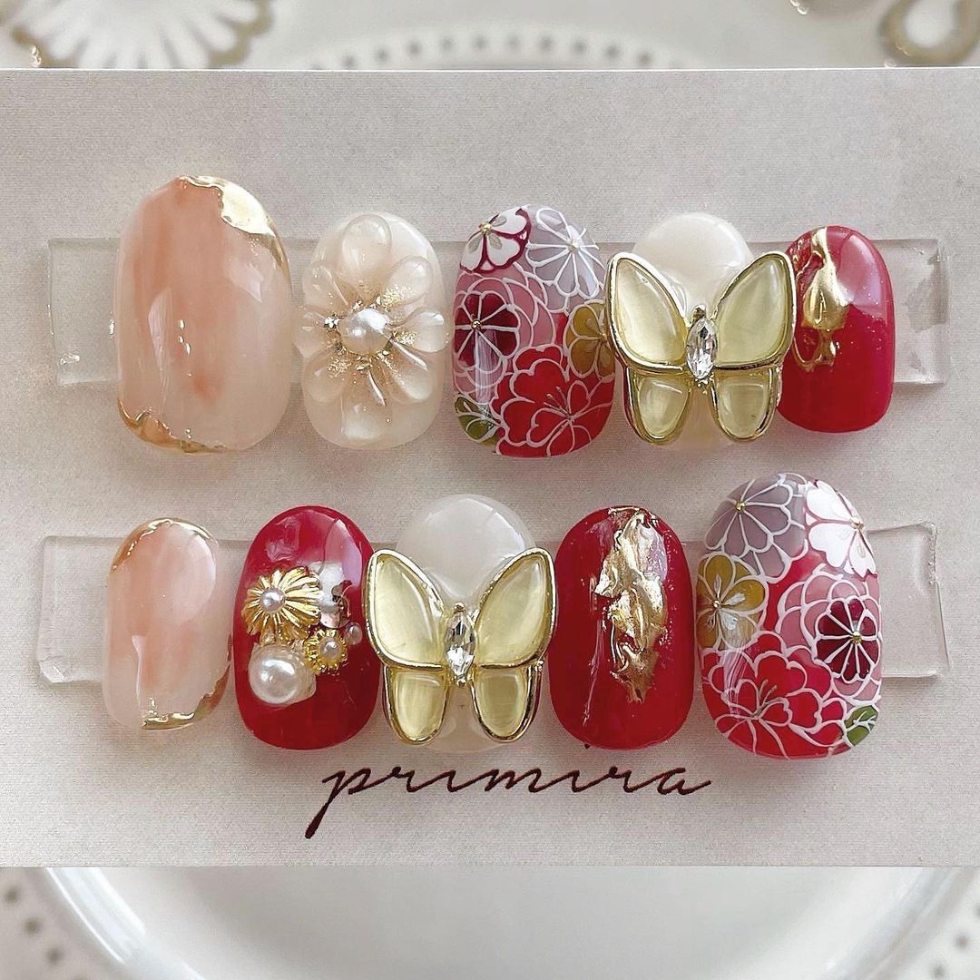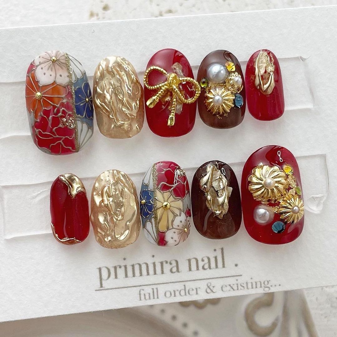 【保存版】成人式に!レッド系カラーの和柄ネイル93選!