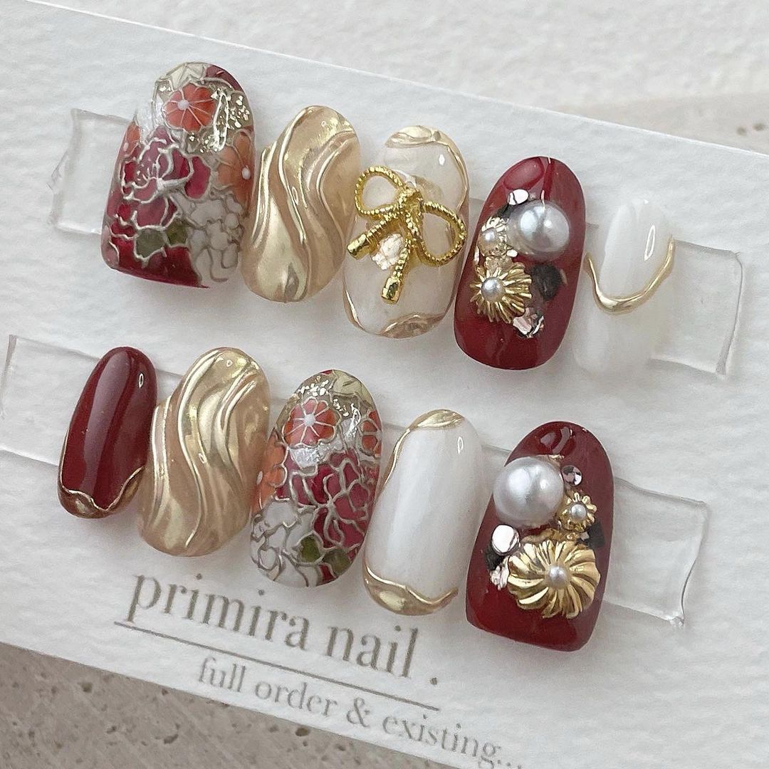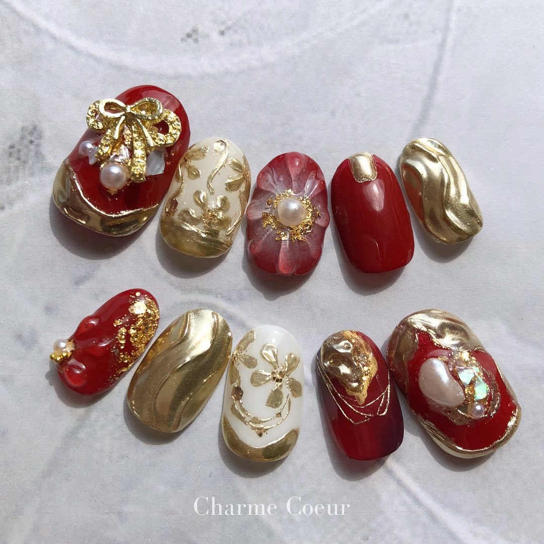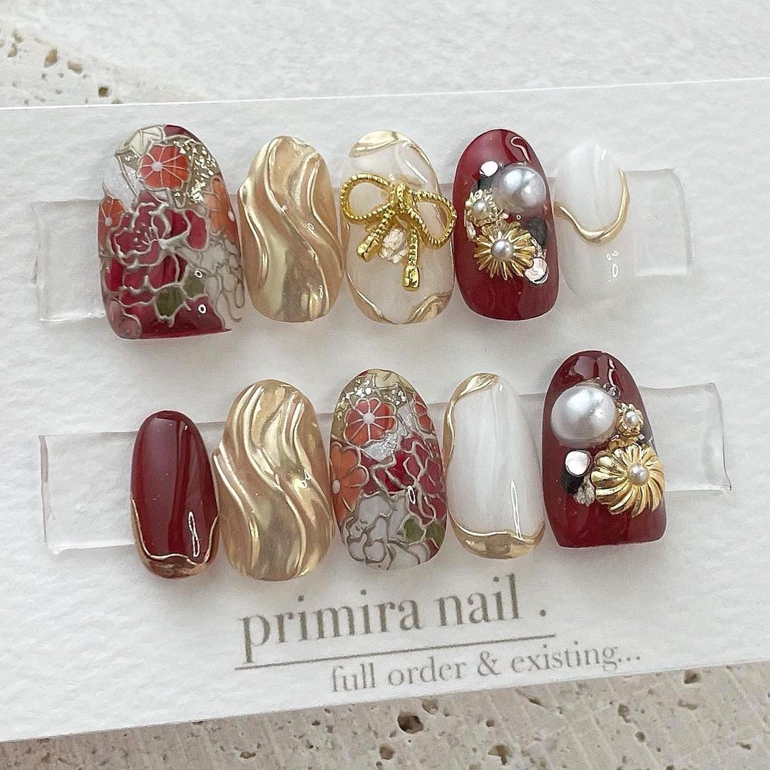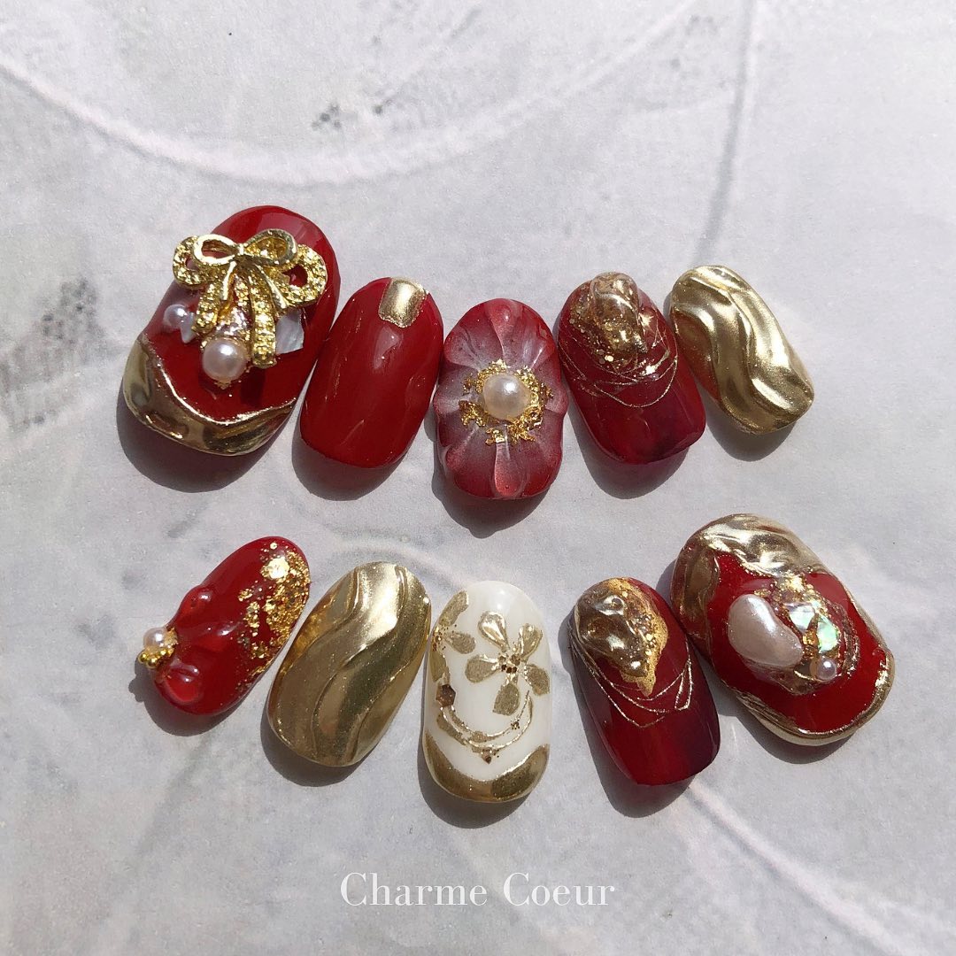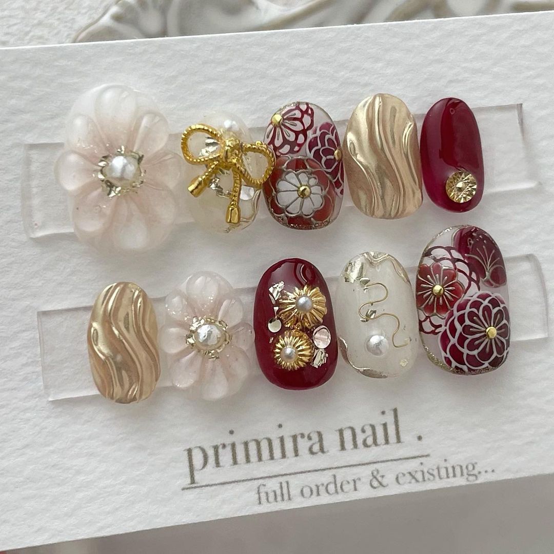 【保存版】成人式に!レッド系カラーの和柄ネイル93選!