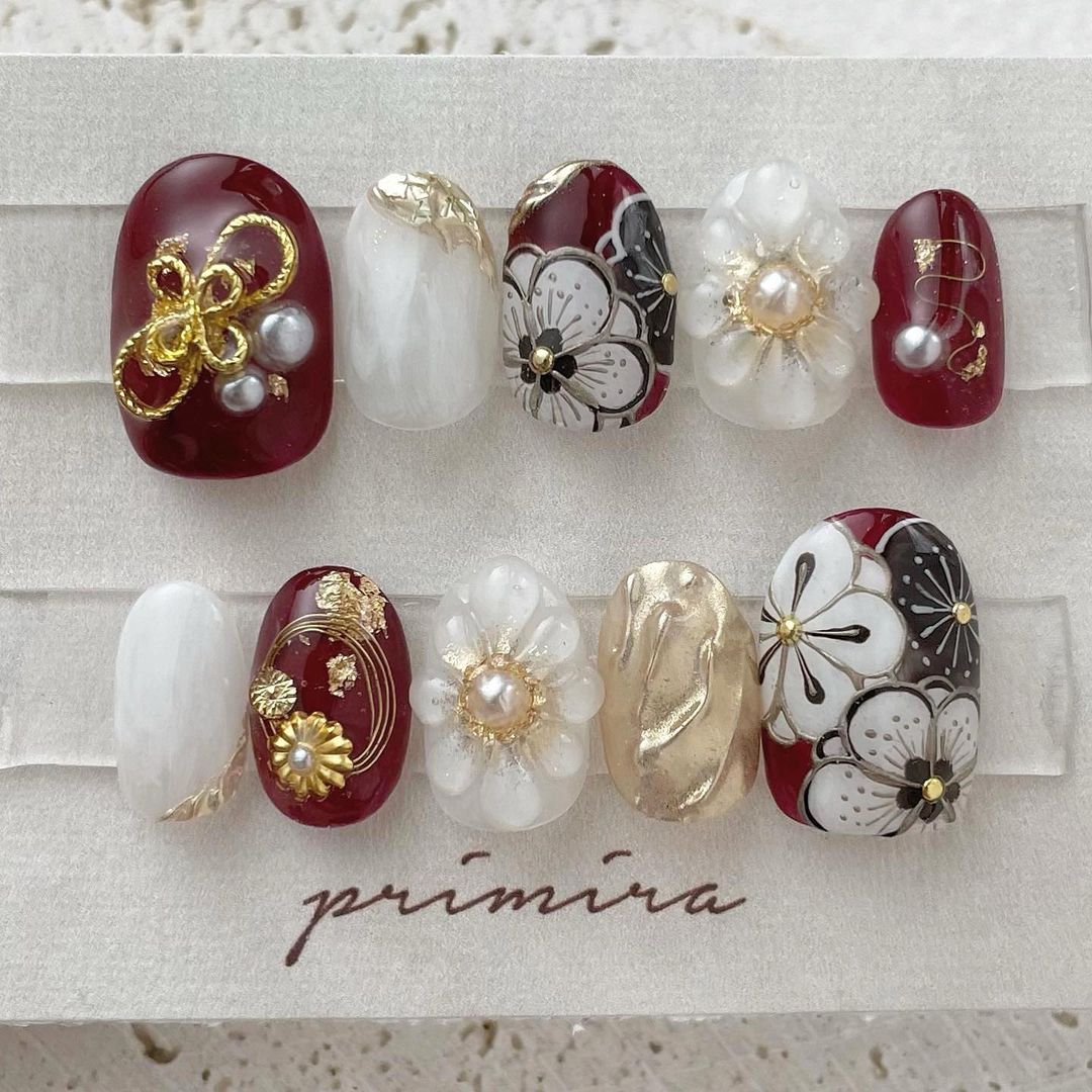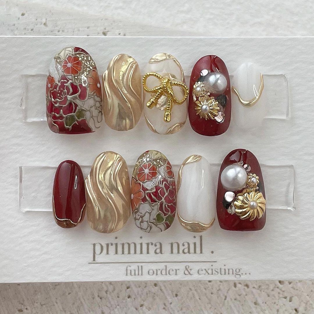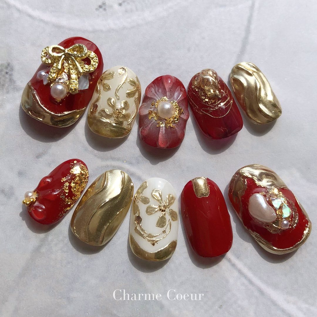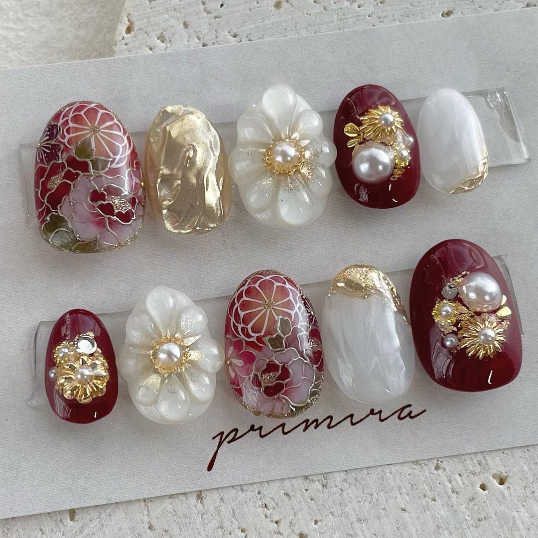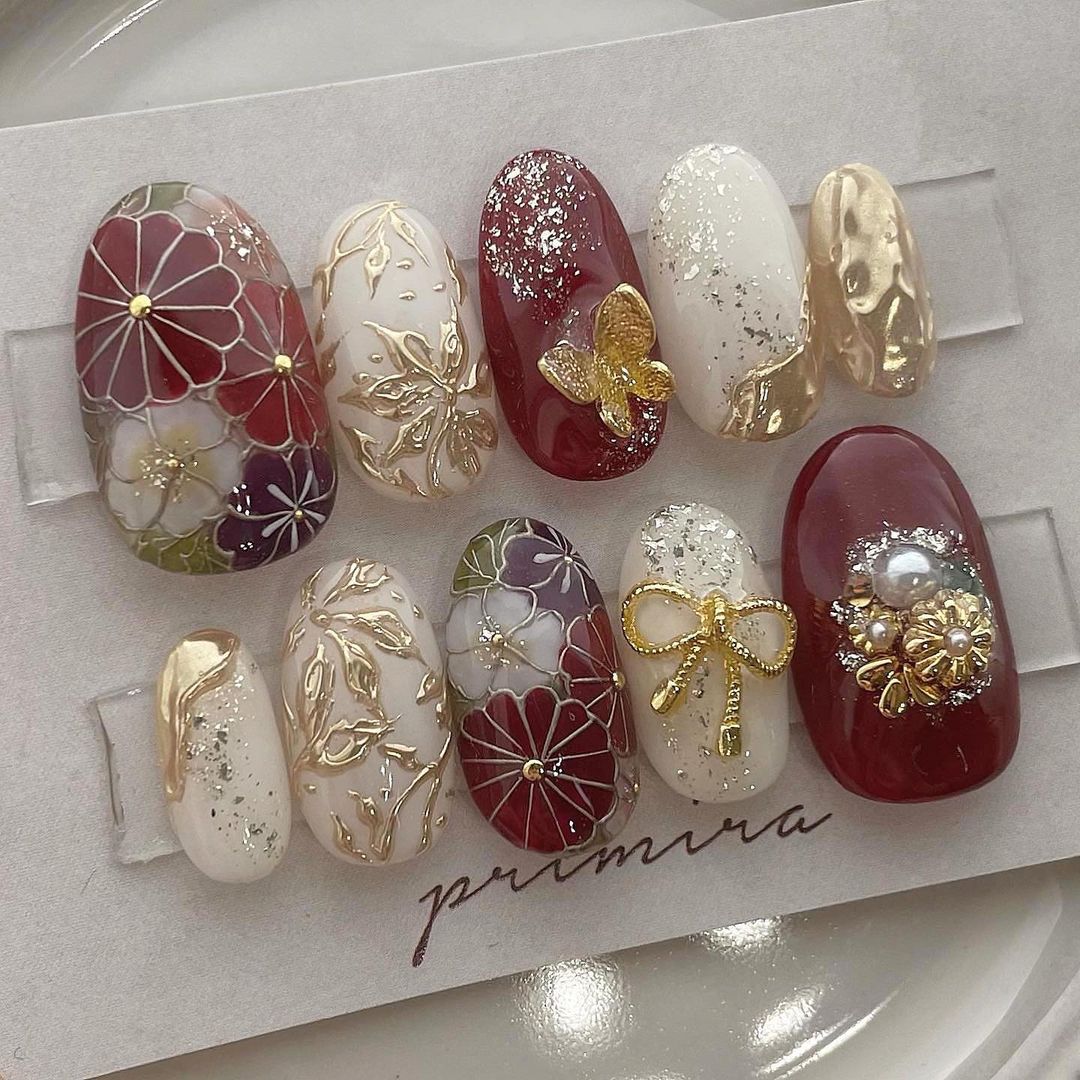 【保存版】成人式に!レッド系カラーの和柄ネイル93選!