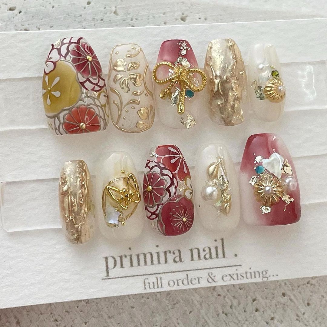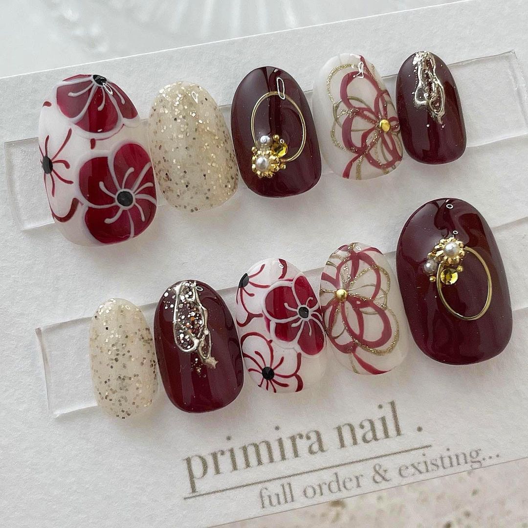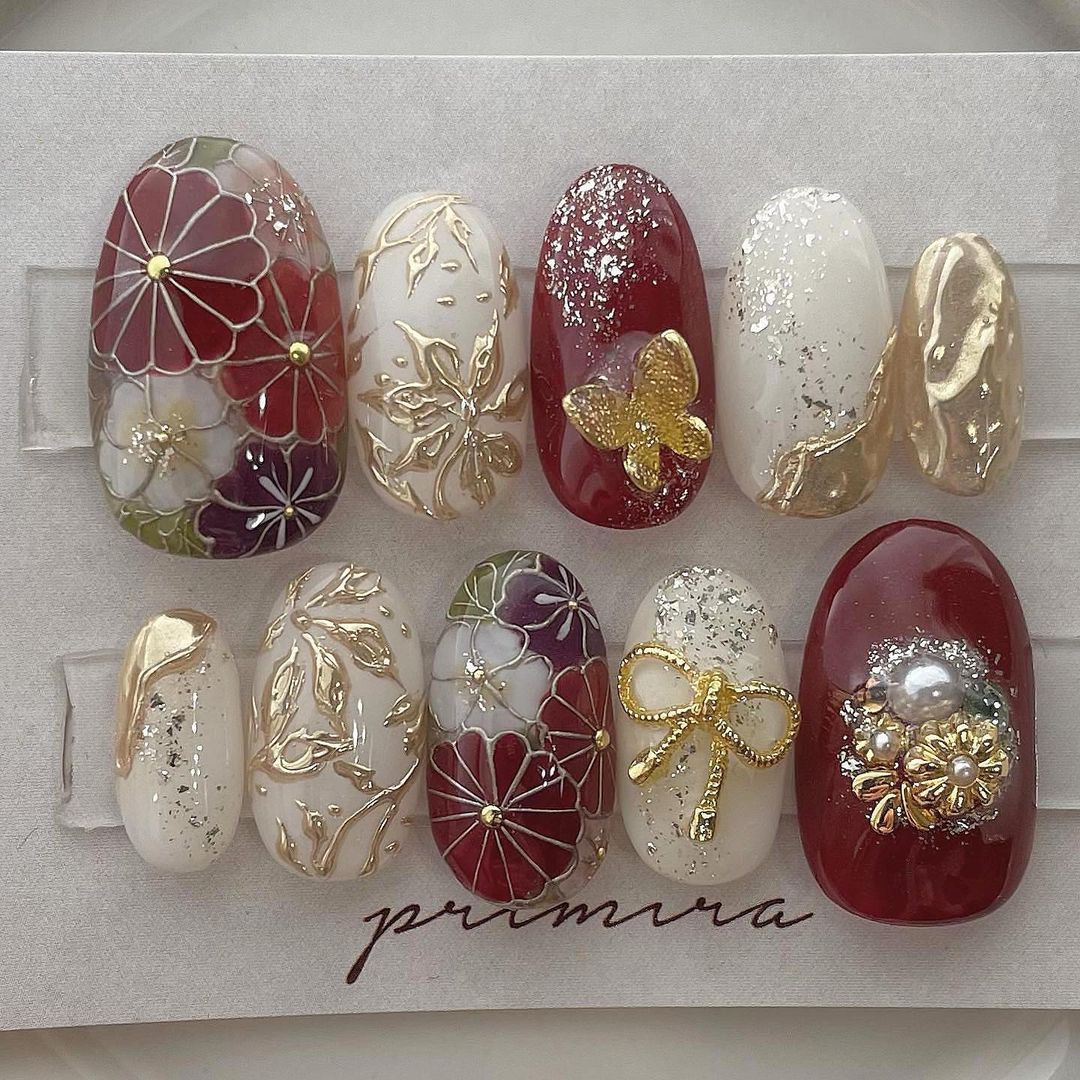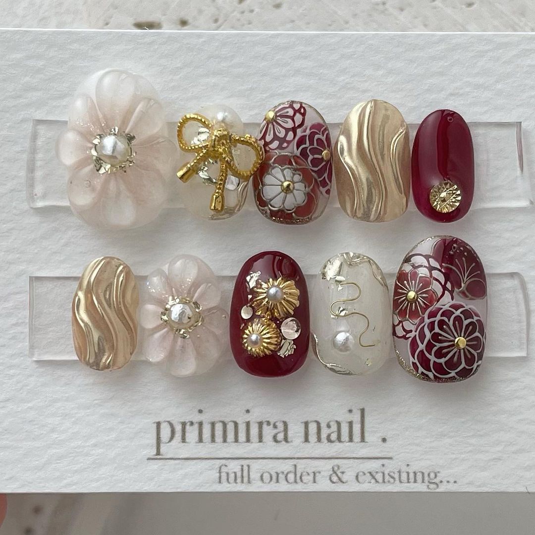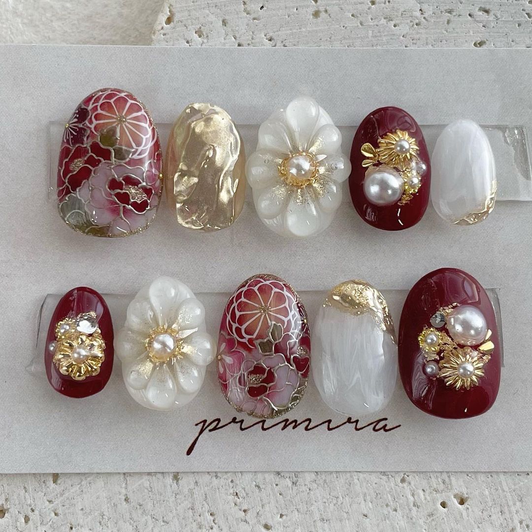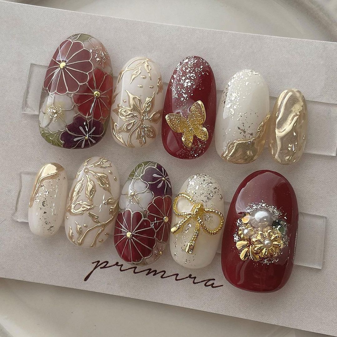 【保存版】成人式に!レッド系カラーの和柄ネイル93選!