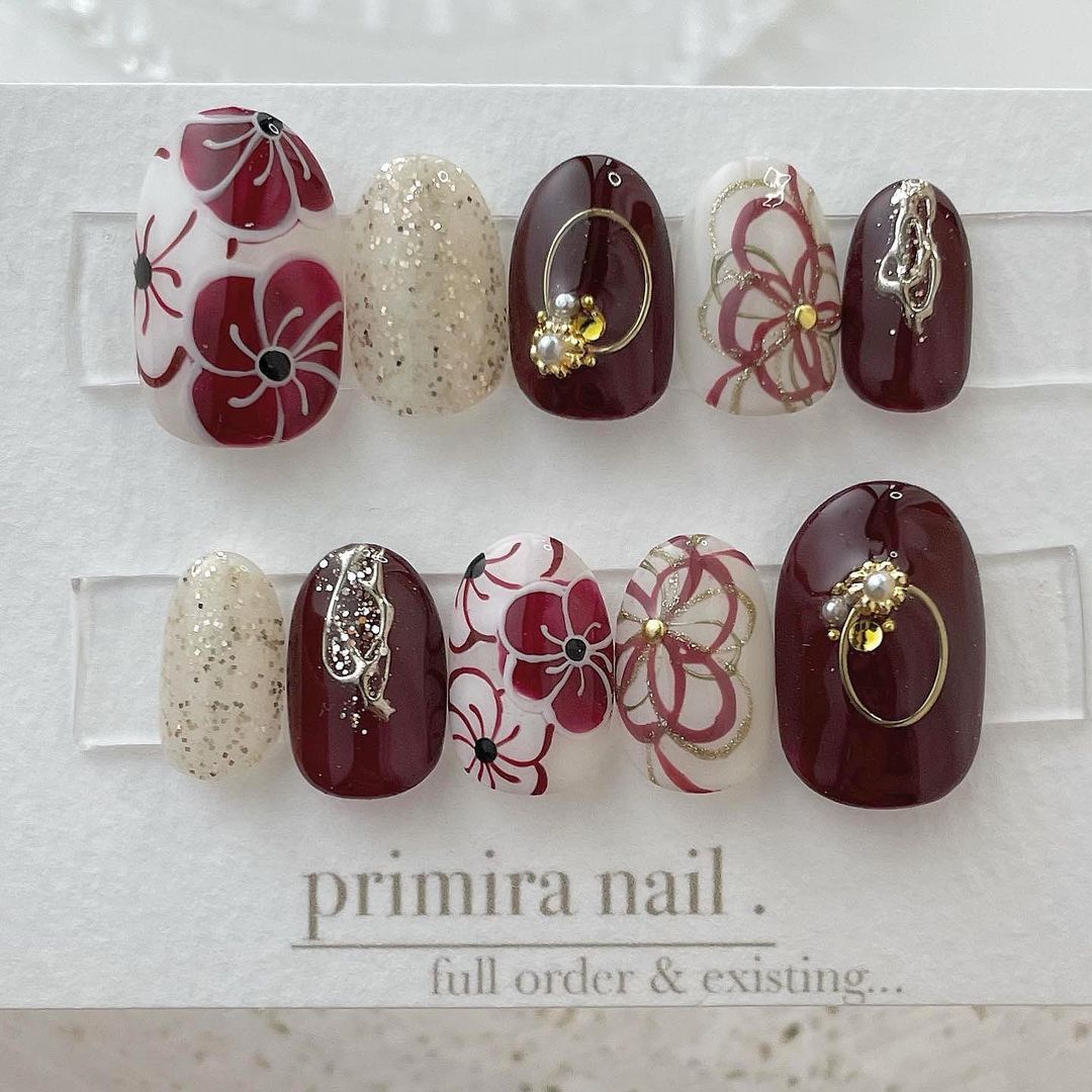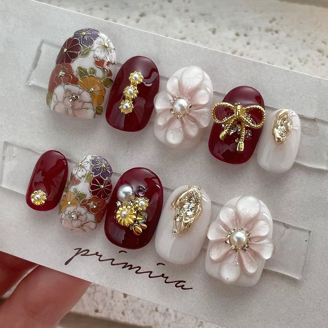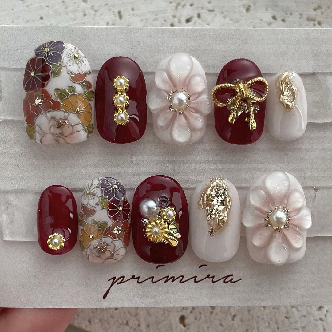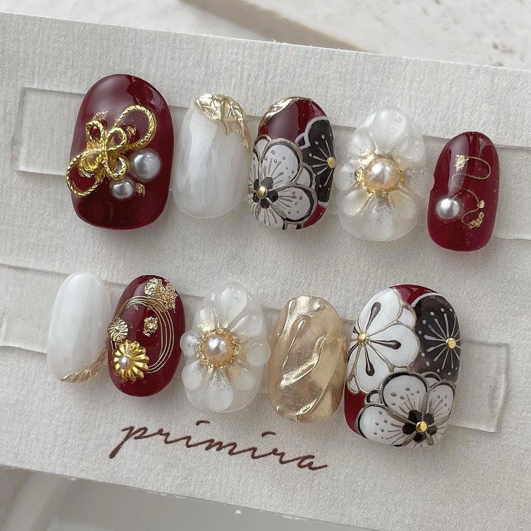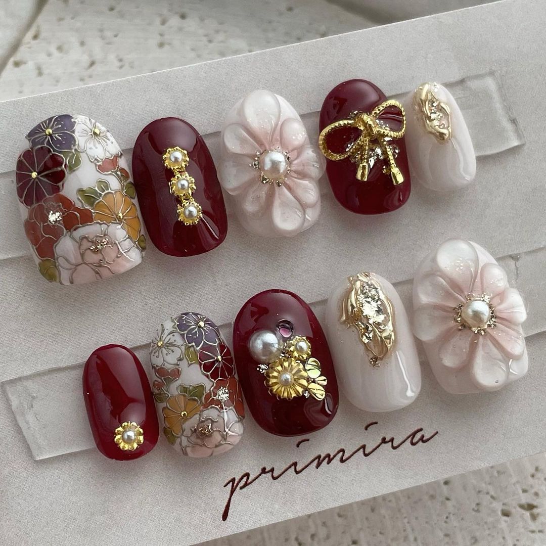 【保存版】成人式に!レッド系カラーの和柄ネイル93選!