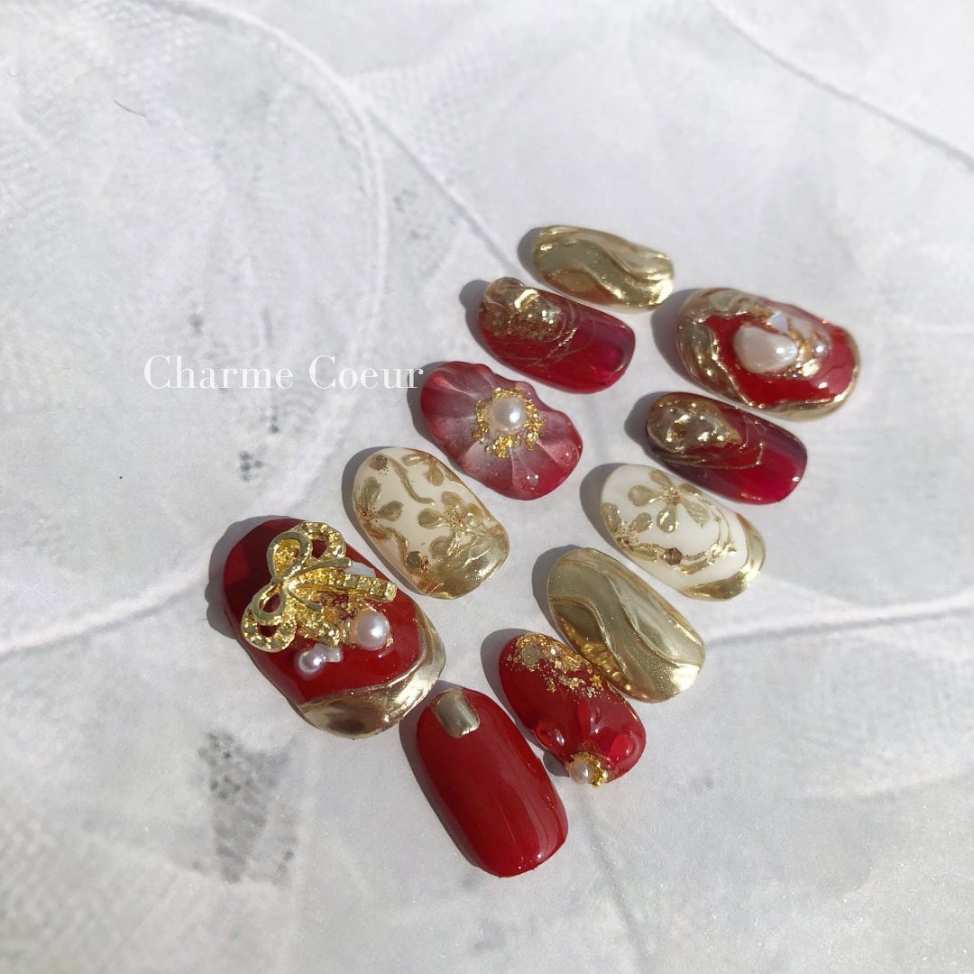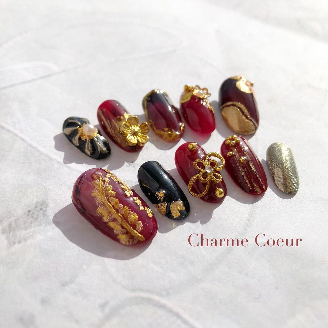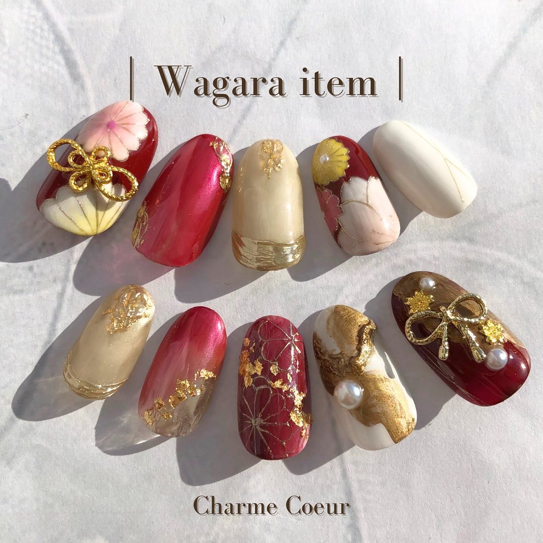 今回はレッド系カラーの和柄ネイルデザインをご紹介します!