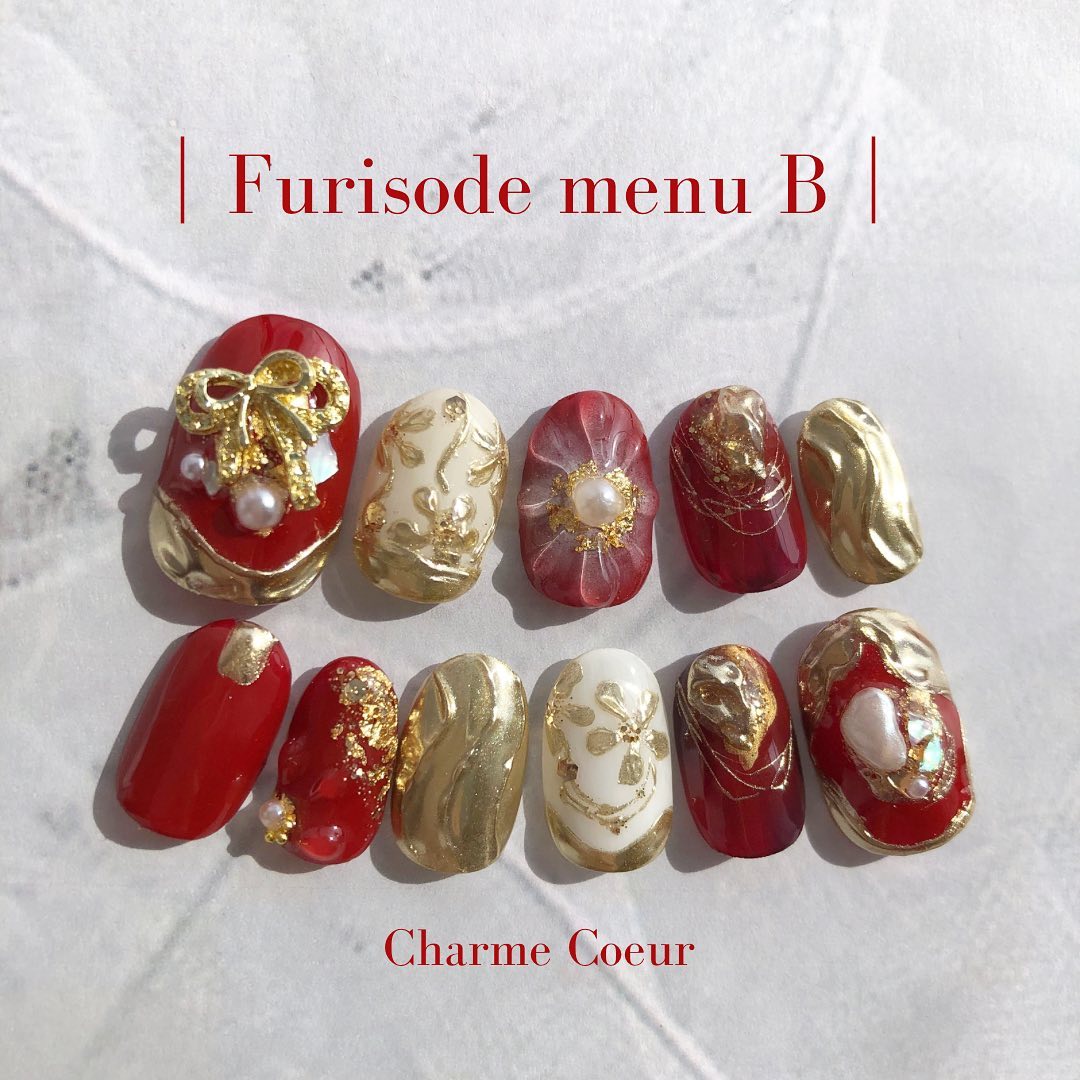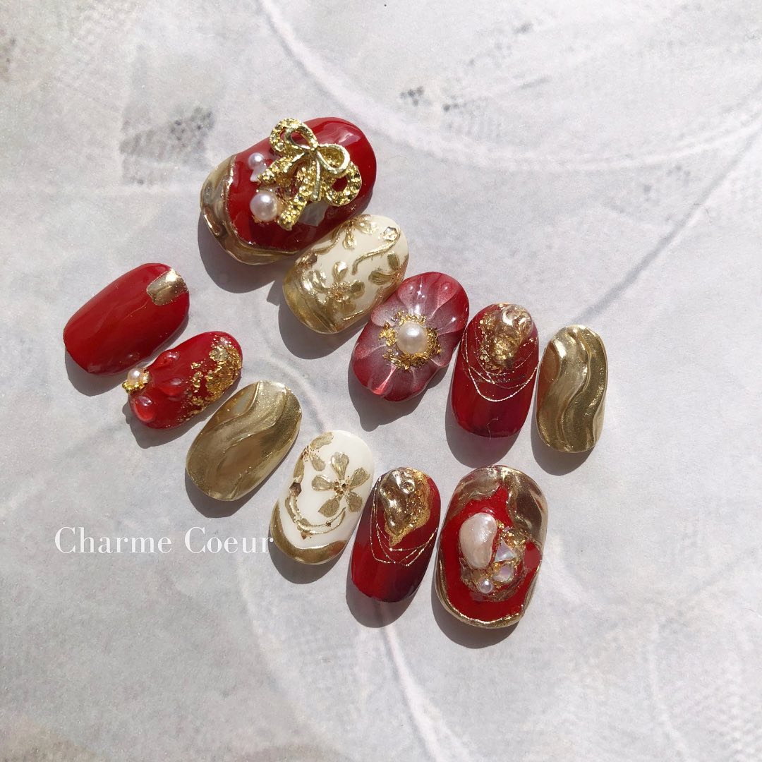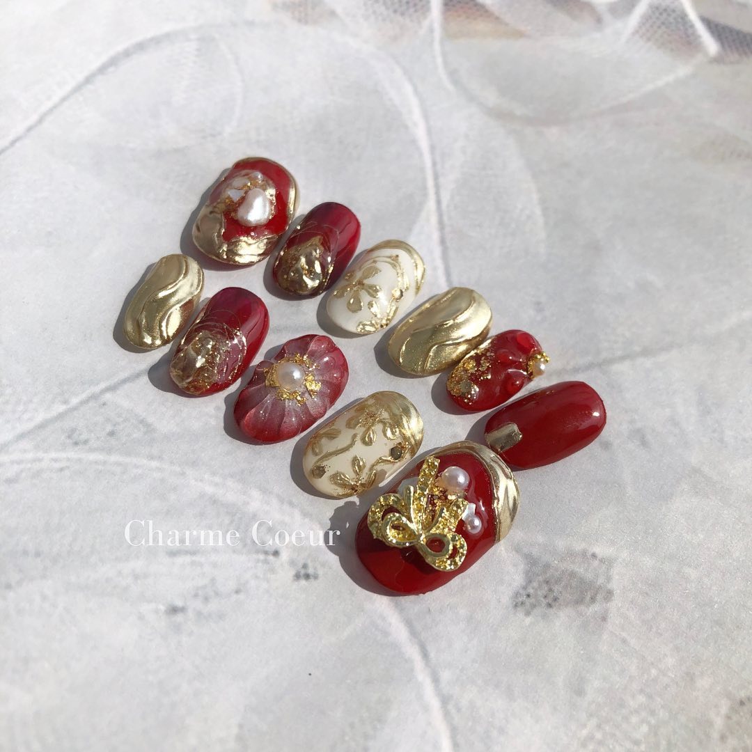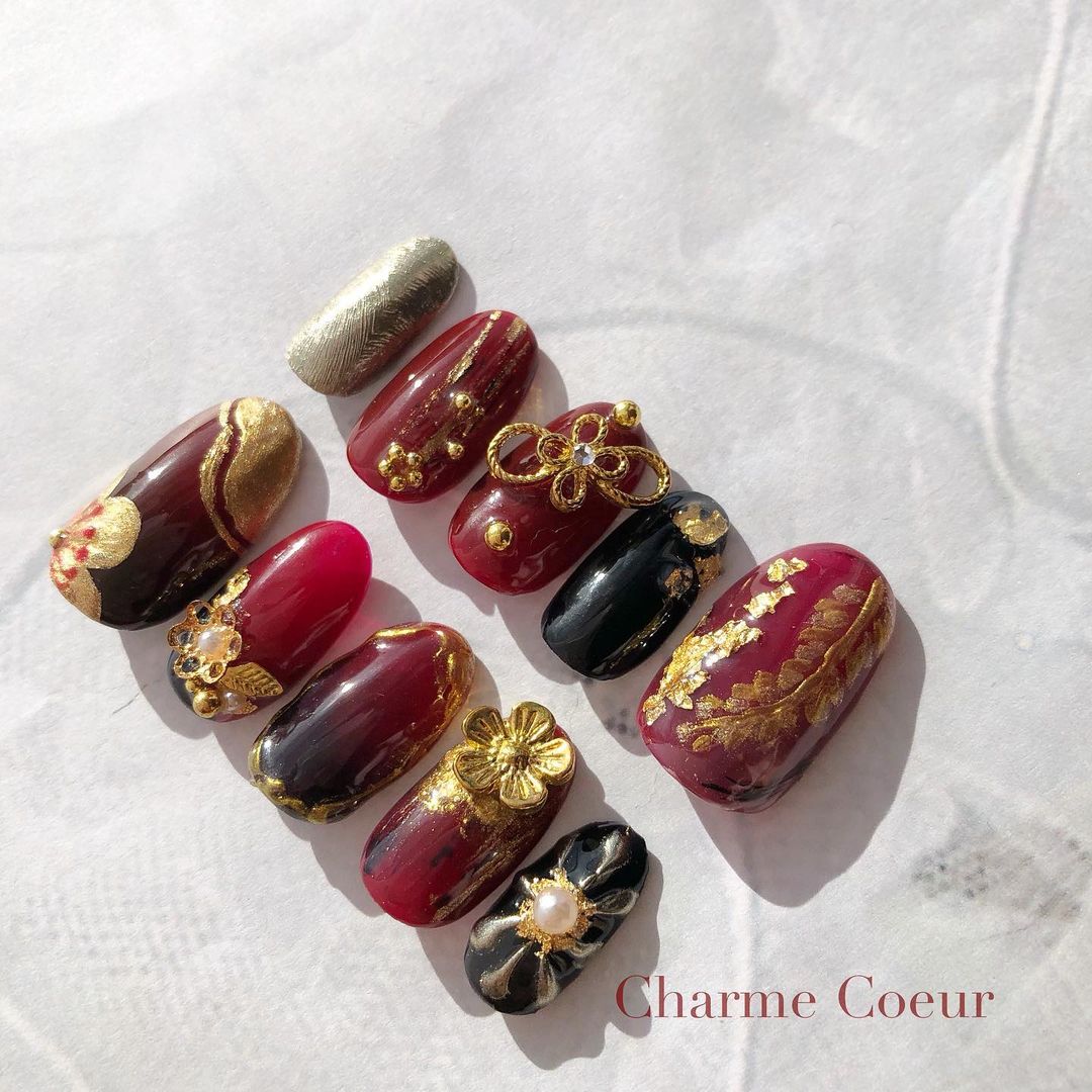 今回はレッド系カラーの和柄ネイルデザインをご紹介します!