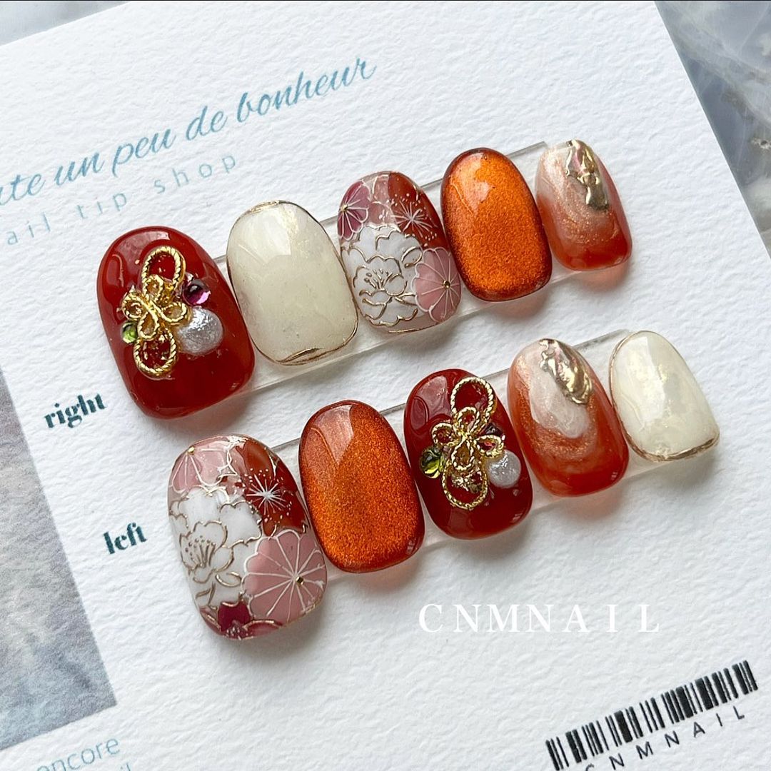 今回は赤系カラーの和柄ネイルデザインをご紹介します✨